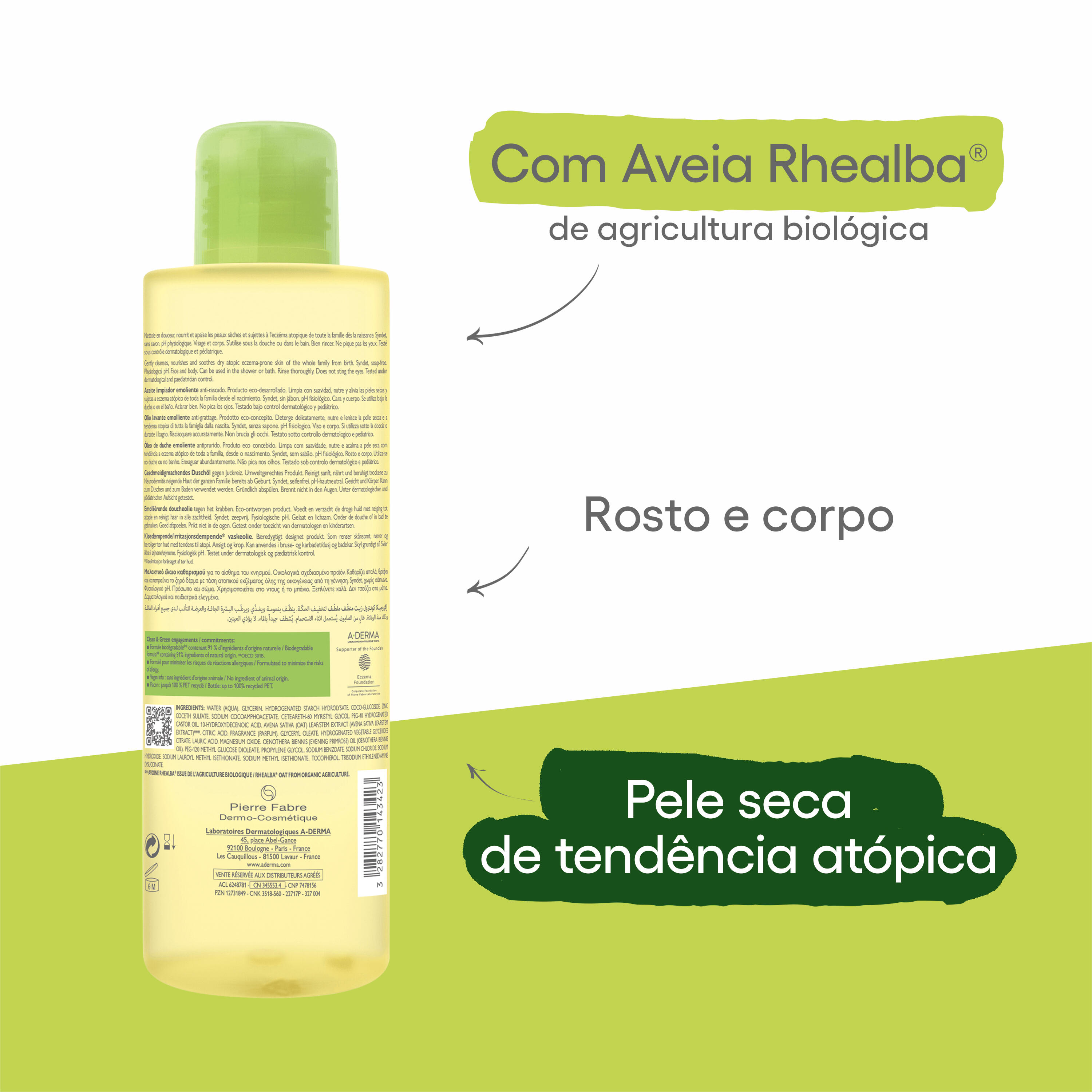 O Óleo Emoliente de Limpeza limpa e acalma a pele seca e frágil com tendência para eczema atópico. Imediatamente após a aplicação, 100% da pele é suavizada.¹ Em três semanas, a secura é reduzida em 95%.² A sua fórmula biodegradável* com 91% de ingredientes naturais pode ser utilizada diariamente no duche ou no banho, tanto no rosto como no corpo. A sua fórmula com Extrato de Plântulas de Aveia Rhealba® alivia a irritação*, acalma, suaviza e nutre a pele frágil.