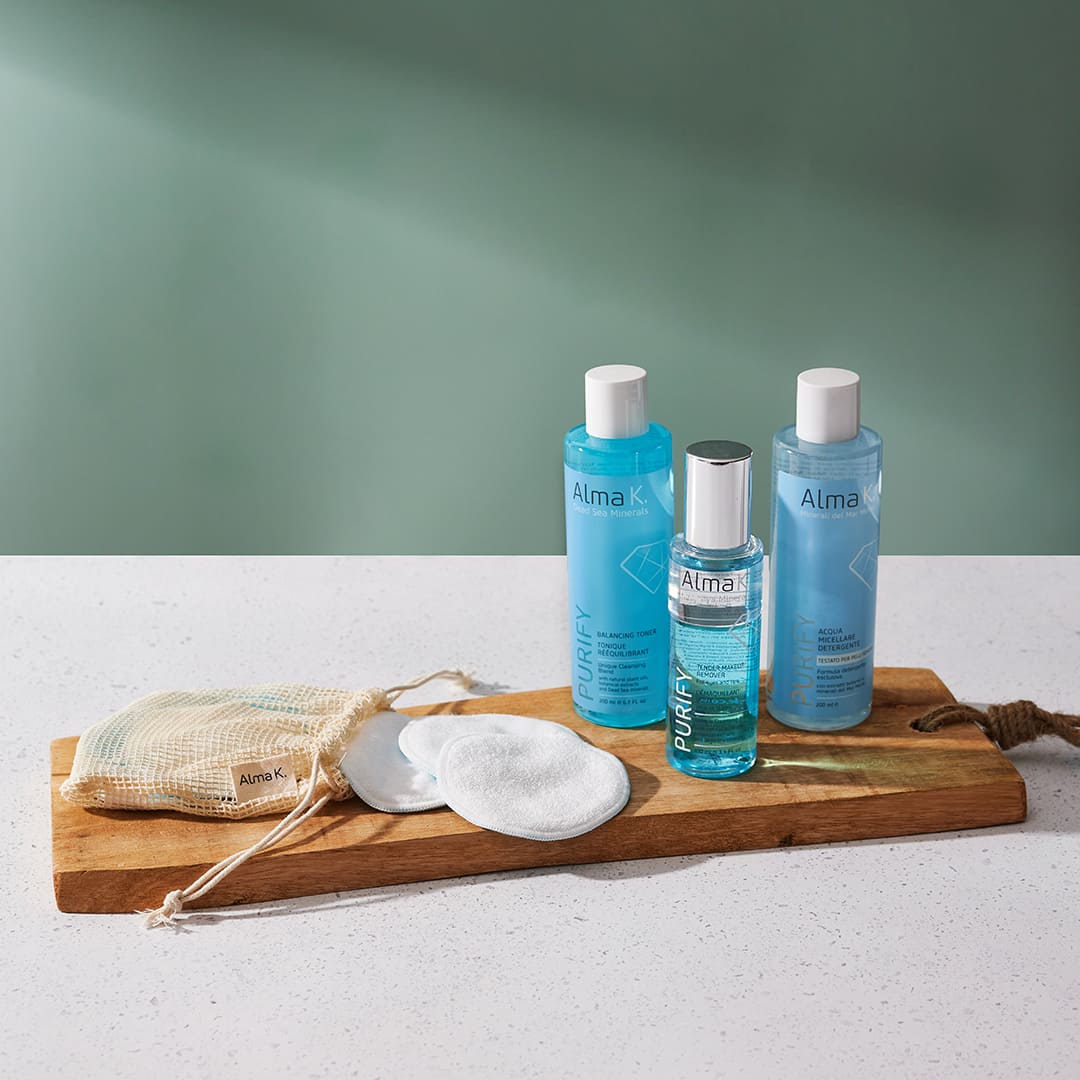 Lavar na máquina antes da primeira utilização. Adicione o produto de limpeza Alma K à almofada e passe suavemente sobre a pele para remover a maquiagem e as impurezas. Após utilizar, lave no ciclo delicado e seque na horizontal.