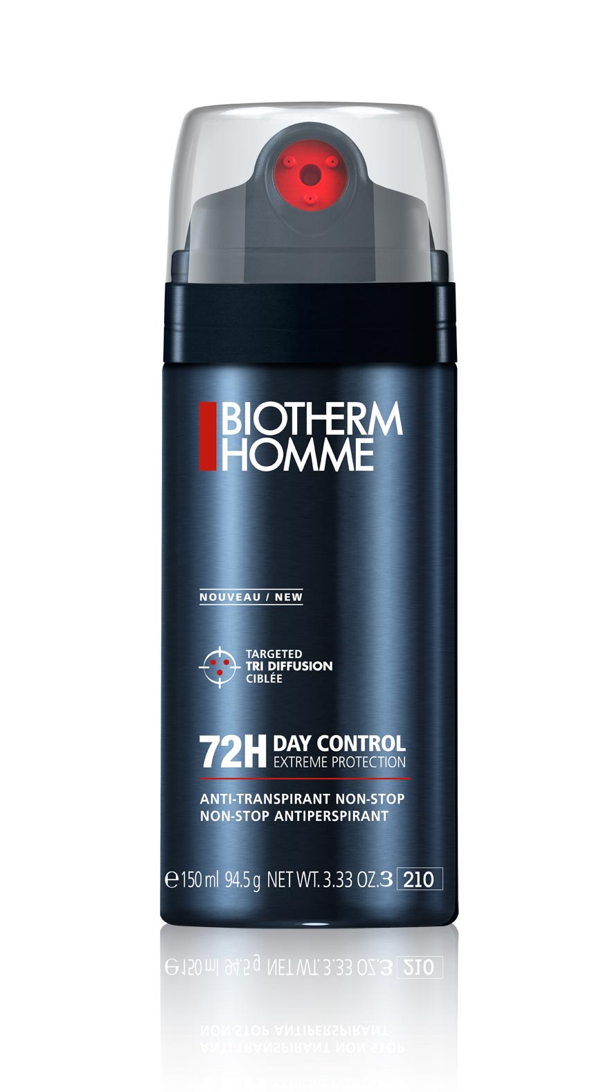 Biotherm Homme aumenta a proteção dos seus desodorizantes graças à tecnologia Protect TechnologyTM Inteligente: um desodorizante fresco e seco que oferece 72 horas de proteção de alta performance e longa duração contra a transpiração.