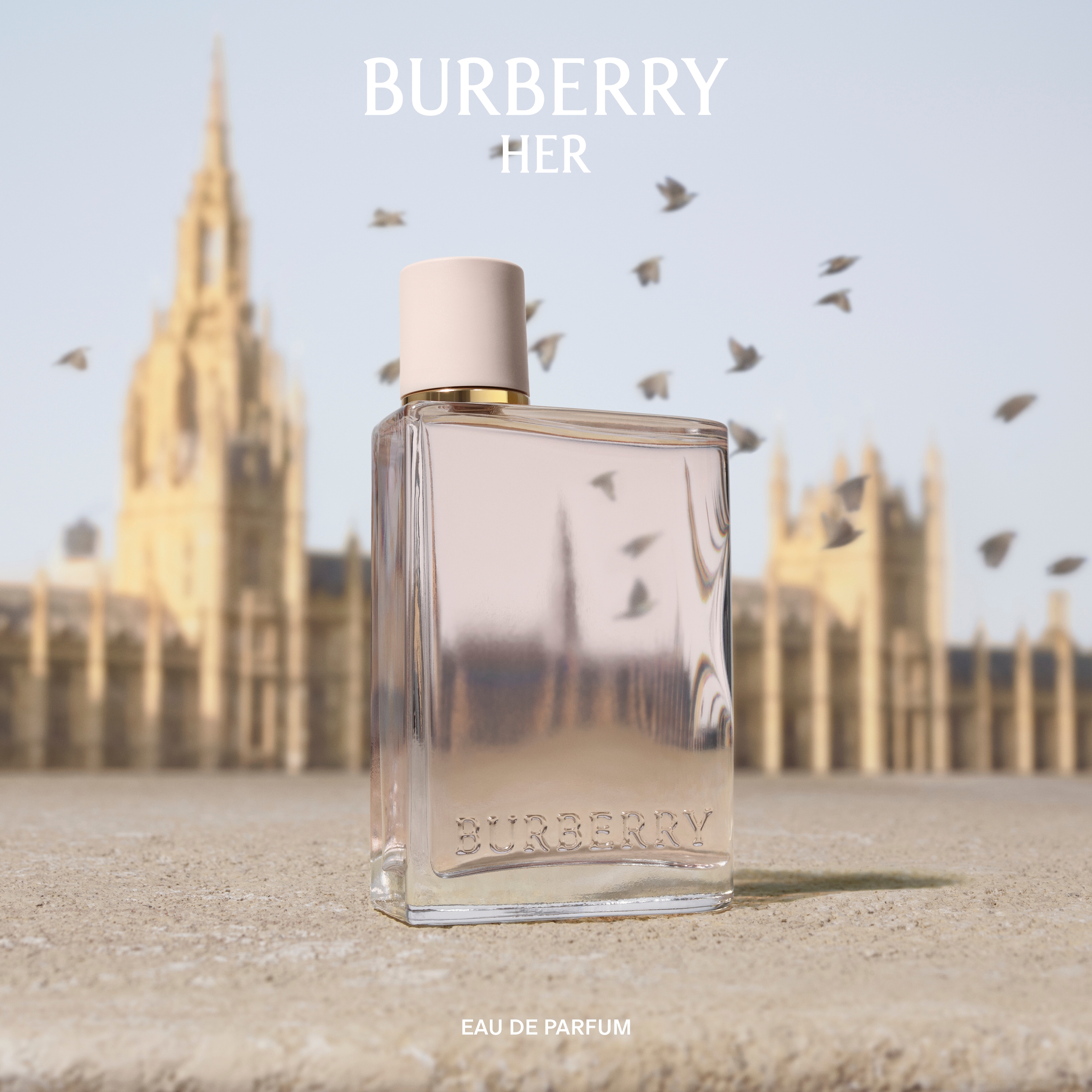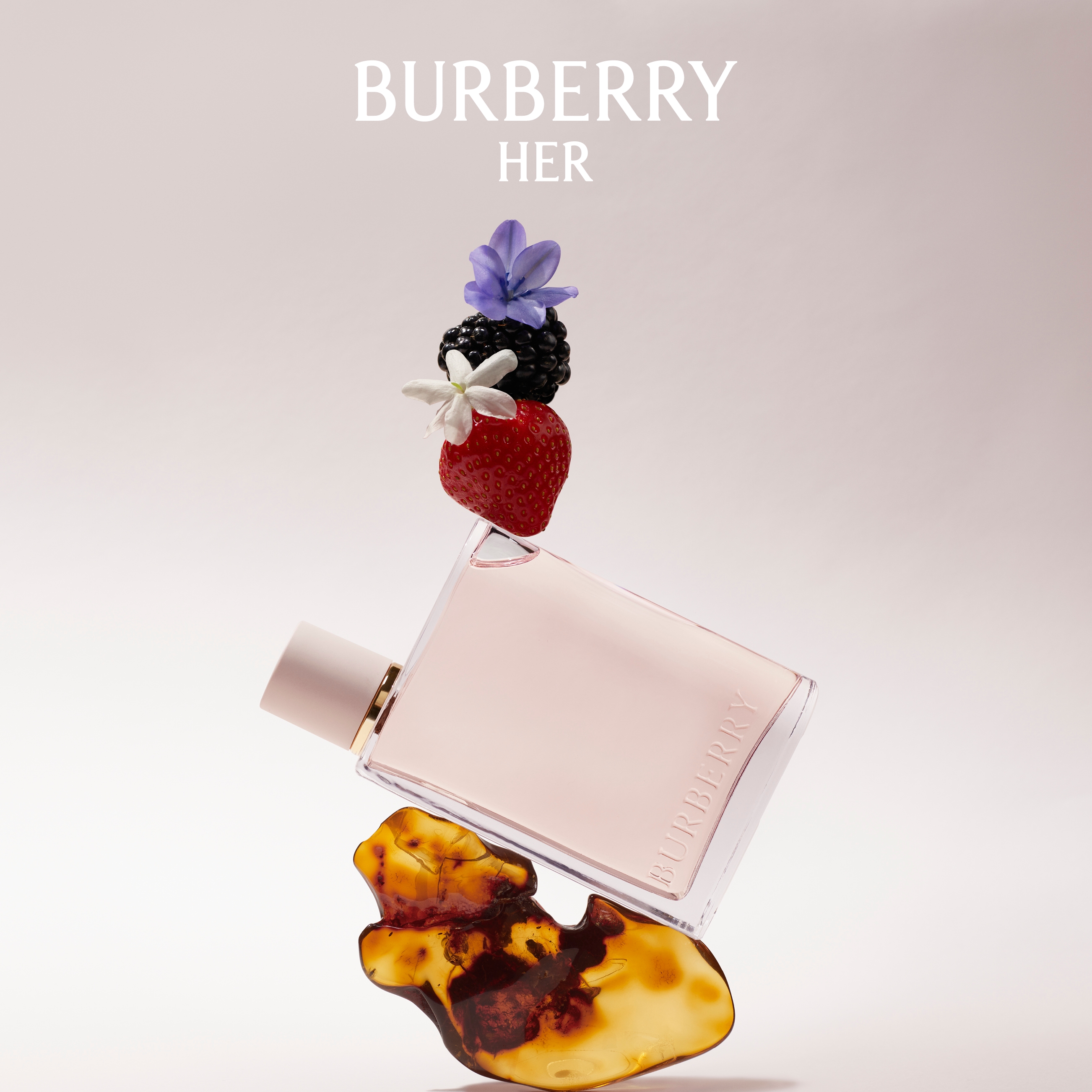 Burberry Her Eau de Parfum, a primeira fragrância Gourmand com um toque britânico da Burberry. Uma explosão de Frutos vermelhos aligeirada com o luminoso acorde de Madeiras brancas. Trata-se de uma dedicatória à cidade de Londres - uma bonita, animada e criativa metrópole que é também eclética e cheia de vida. A personificação da verdadeira atitude londrina - jovem, aventureira e provocadora. Contida num frasco remasterizado, que vai buscar inspiração a um clássico da perfumaria da Burbery.