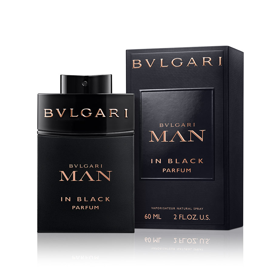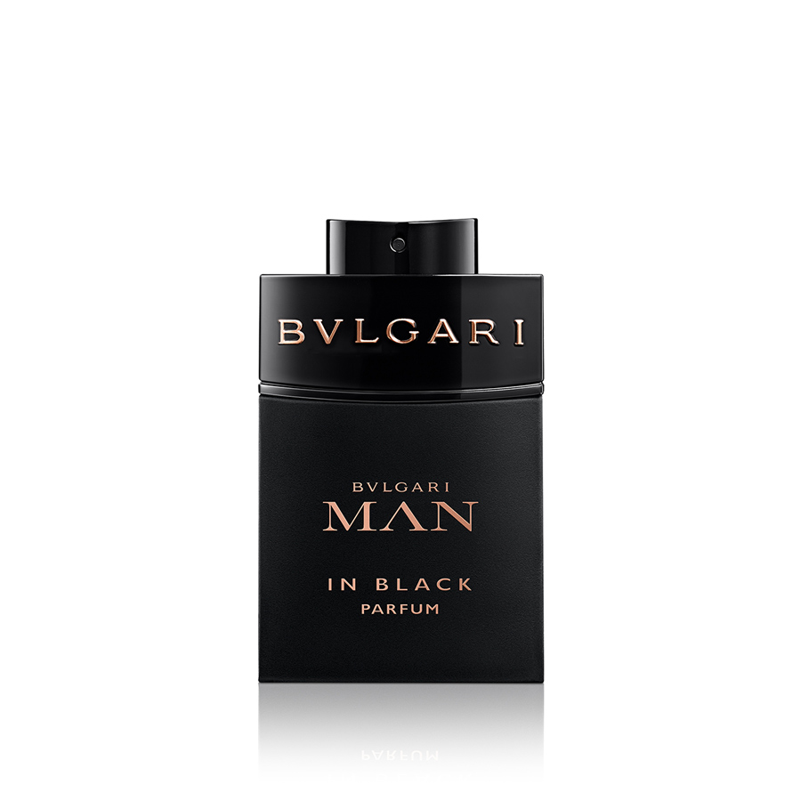 O frasco totalmente preto oferece uma interpretação intensa dos códigos estéticos de Bvlgari Man in Black. O uso dramático e audacioso da cor preta lembra visualmente a maior concentração do Parfum, diferindo do contraste mais marcado entre o preto e o ouro rosa da Eau de Parfum.