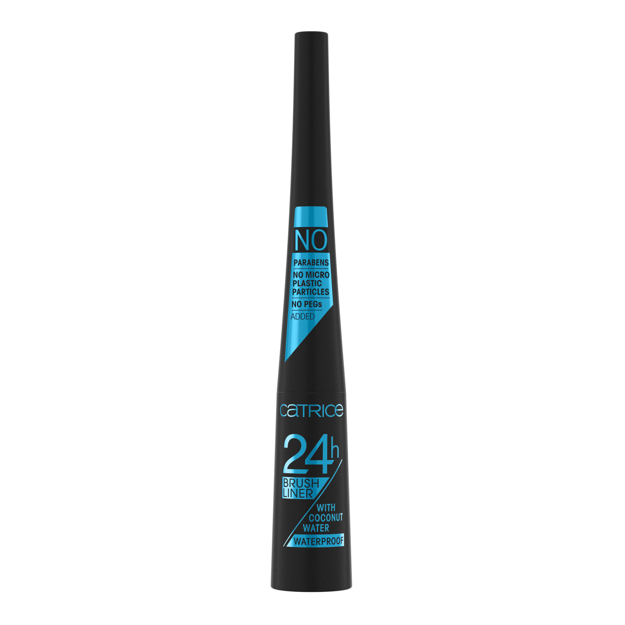 O 24h Brush Liner não é apenas um eyeliner que oferece precisão em apenas uma aplicação, é também um must have livre de parabenos, partículas microplásticas e PEGs. Graças ao pincel fino e flexível, a textura preta escura pode ser aplicada na linha das pestanas com maior precisão – assim, podem ser criados com facilidade estilos de eyeliner fino e olhos de gato dramáticos. E mais: a fórmula vegan, de longa duração, contém água de coco para um boost de hidratação.