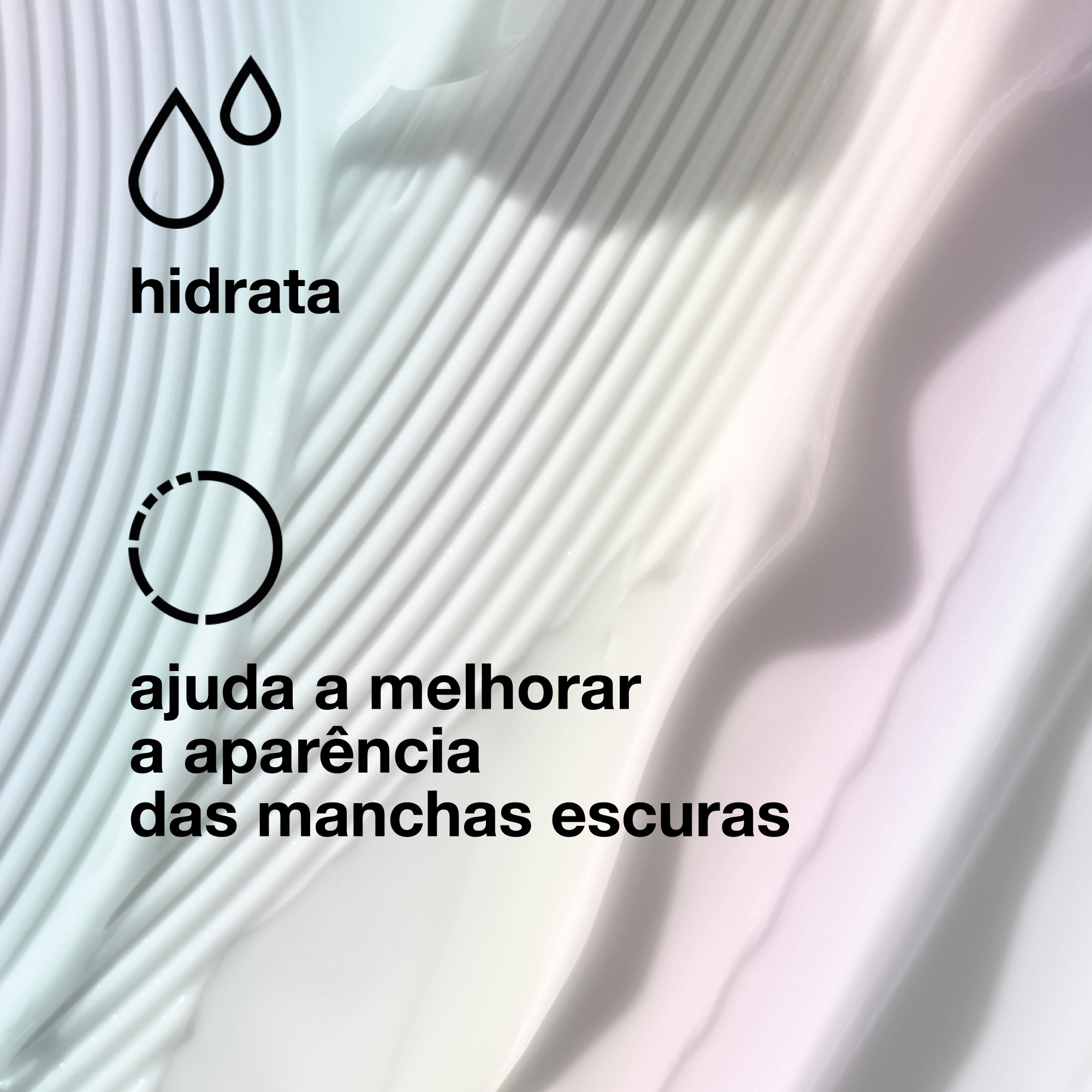 Hidratante leve com o exclusivo CL302 Brightening Complex, ajuda a melhorar múltiplas dimensões de descoloração: contraste de manchas escuras, intensidade das manchas escuras, opacidade e vermelhidão causada pela irritação.