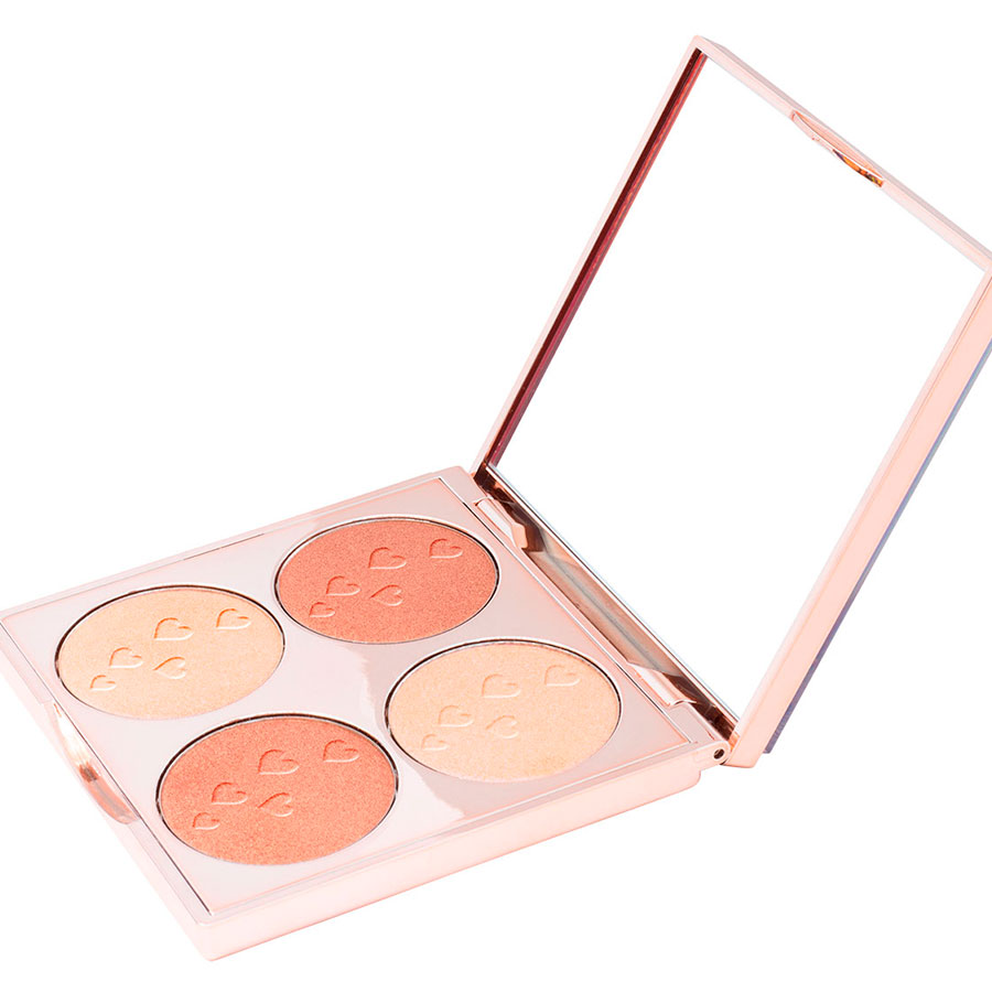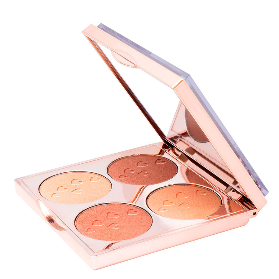 Esta paleta contém dois tons de iluminadores, um blush e um bronzer. Os iluminadores e o bronzer podem ser usados ??secos para maquilhagem do dia-a-dia ou húmidos para um acabamento dramático. A tonalidade universal do blush destacará a sua aparência perfeita, adicionando um toque de cor e uma aparência saudável.