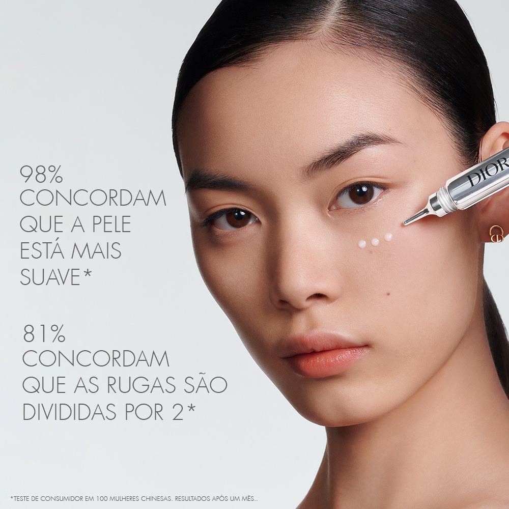Capture Totale Hyalushot é o 1º corretor multirrugas Dior que atua na visibilidade das rugas instaladas, assim como nos 1os sinais de rugas. Composto por 97%* de ingredientes de origem natural, atua sobre as rugas de 8 zonas do rosto: rugas na testa, "rugas de leão" entre as sobrancelhas, "pés de galinha" nos cantos externos dos olhos, rugas verticais que marcam as maçãs do rosto, "rugas de expressão nasal" nas zonas superior e lateral do nariz, rugas no lábio superior e "rugas da marioneta" nos cantos inferiores dos lábios. A fórmula do corretor, que inclui um duo de ácidos hialurónicos, um péptido e um extrato de longoza dos jardins Dior de Madagáscar, atua para uma pele como que alisada e preenchida, de forma imediata e prolongada. * Valor calculado com base na norma ISO 16128-1 e ISO 16128-2. Os restantes 3% dos ingredientes contribuem para o desempenho, a sensorialidade e a estabilidade da fórmula.