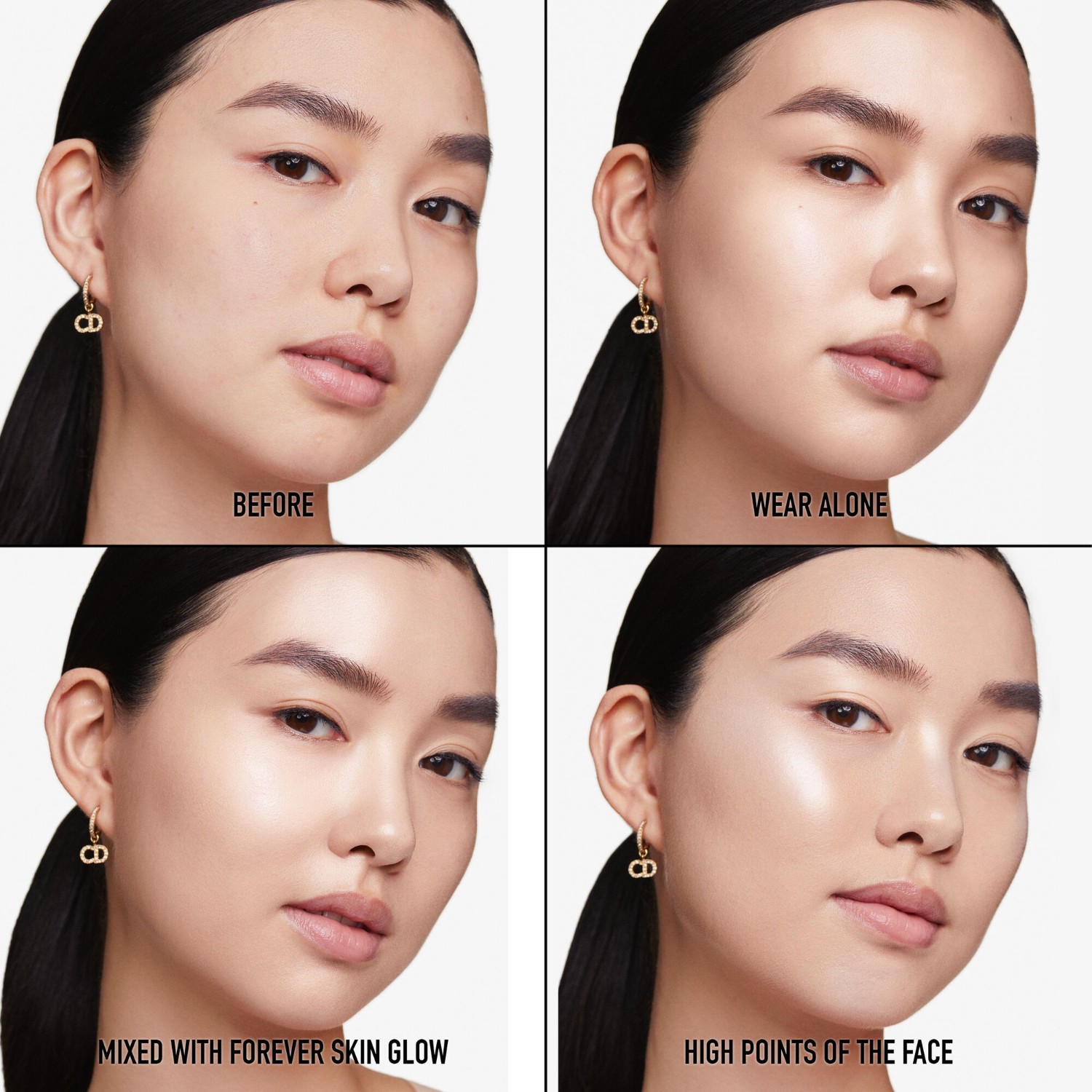 O fluido revela a luminosidade própria da pele ao natural. Aplicado antes ou misturado com a base Dior Forever Skin Glow, melhora a luminosidade da pele. Utilizado após a base, através de toques, ilumina os pontos de luz do rosto, como as maçãs do rosto ou a cana do nariz.