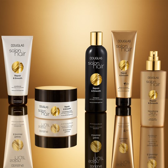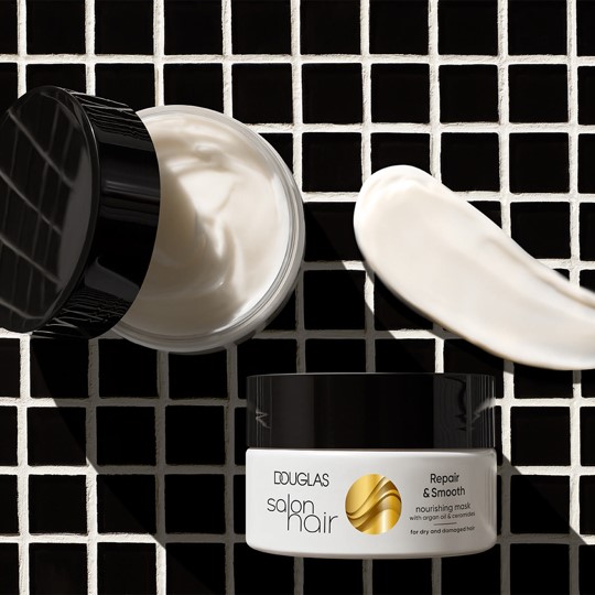 Obtenha cuidados capilares profissionais diretamente na sua casa com a Máscara Nutritiva Repair & Smooth da linha Salon Hair da Douglas Collection: a fórmula, composta por 97% de ingredientes naturais, ajuda a hidratar intensamente os cabelos secos e danificados desde o comprimento até às pontas. O óleo de argão e as ceramidas melhoram a aparência de cada fio. Após a aplicação da textura que derrete suavemente, o cabelo recebe nutrientes que duram até 48 horas. O cabelo torna-se flexível e macio e está excelentemente protegido contra a quebra do cabelo. Ao combinar com o Shampoo e o Condicionador Repair & Smooth da linha Salon Hair, a máscara melhora ainda mais a estrutura do cabelo.