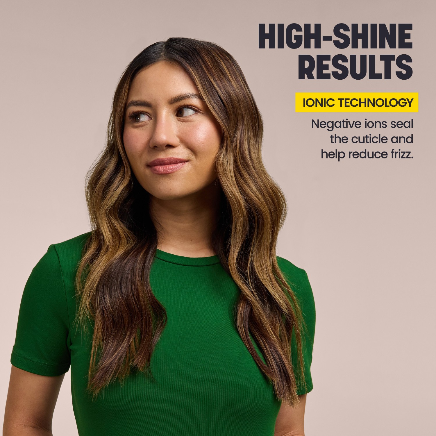 - As tecnologias iônica e infravermelha retêm a hidratação, controlam o frizz e proporcionam um brilho espelhado.