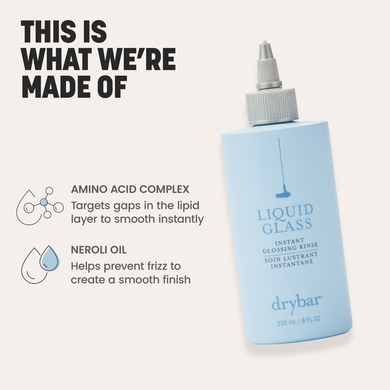 O Drybar Instant Glossing Rinse utiliza a avançada Tecnologia Micelar Reversa, que atrai instantaneamente Aminoácidos para repor a delicada camada lipídica do cabelo, proporcionando um acabamento sedoso, suave e com brilho intenso em apenas 10 segundos.