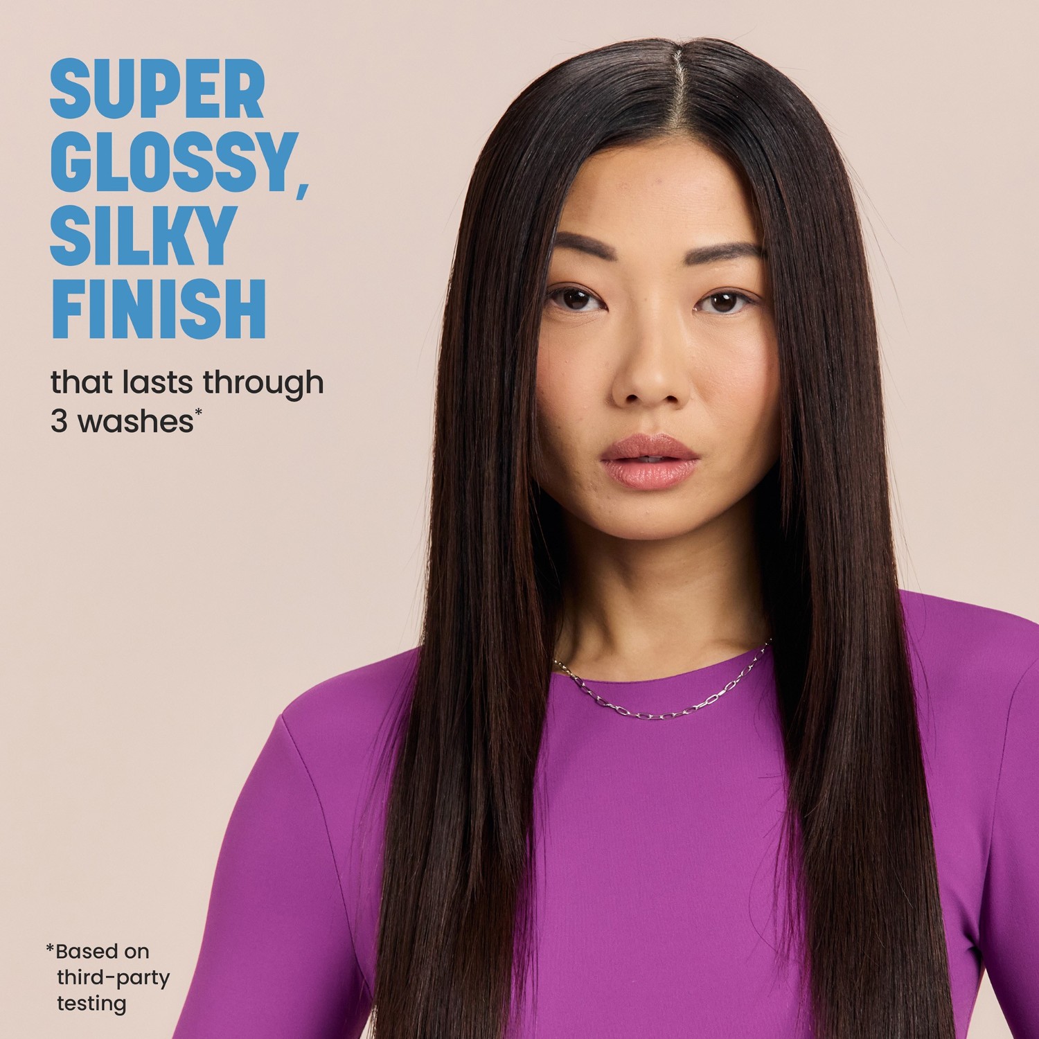 - Deixa os cabelos finos a médios com um acabamento super brilhante, sedoso e sem frizz.