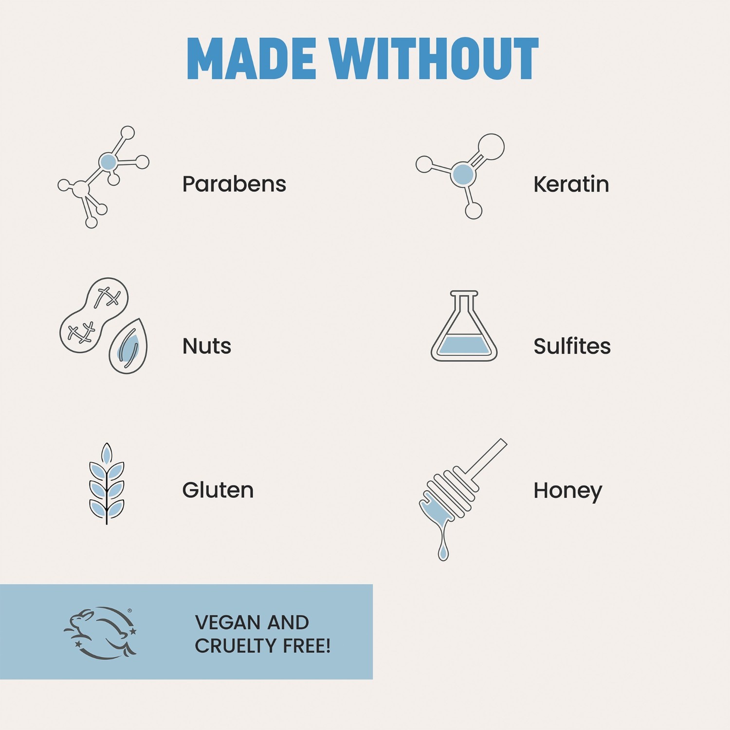 - Fórmula limpa e vegana, livre de parabenos, sulfatos e ftalatos.