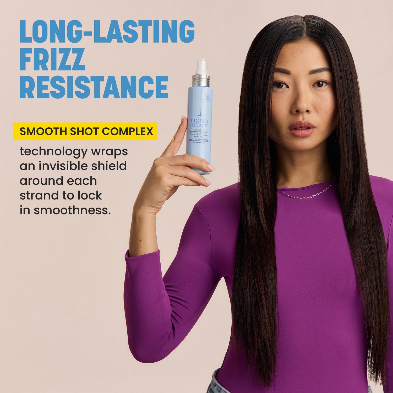 Intensifique o brilho com a rotina completa Liquid Glass: Shampoo, Condicionador, Selante ou Creme Alisador e Sérum.