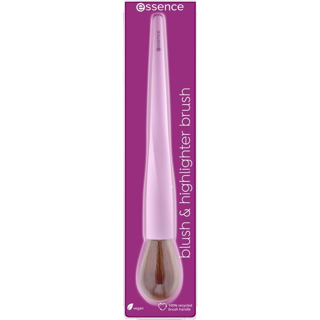 O remate ideal: com o Pincel de Blush e Iluminador da essence. É hora de brilhar, podes aplicar facilmente o blush e o iluminador. A forma deste pincel de blush e iluminador é ideal para criar um look de maquilhagem perfeito. Graças às suas cerdas macias e ao cabo com um toque suave, podes aplicar blush e iluminador de forma fácil e suave, bem como misturá-los na perfeição. O pincel impressiona com uma forma e cor únicas. Além disso, o seu cabo é feito de material 100% reciclado.