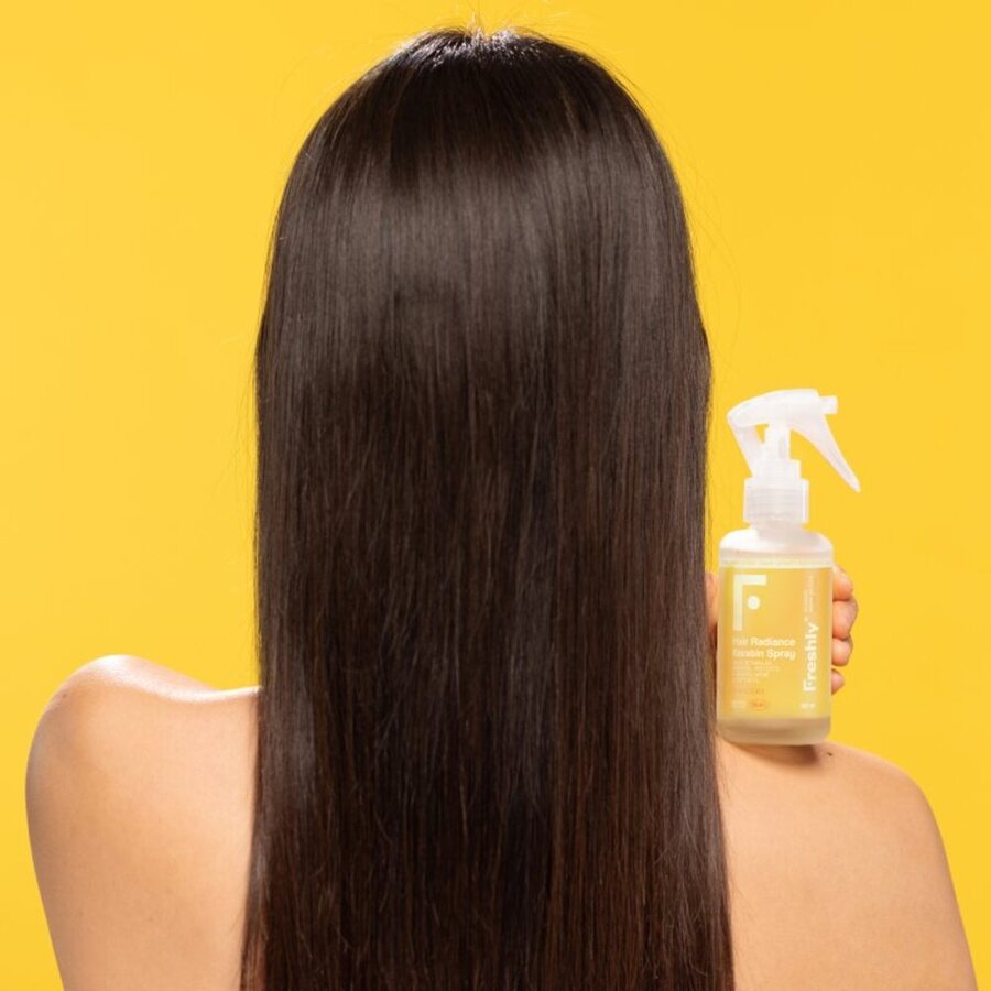 O Hair Radiance Keratin Spray não necessita de enxaguamento é perfeito para desembaraçar o cabelo em segundos. Agita o produto antes de usar, para homogeneizar bem os ingredientes naturais. Aplica 3-4 pulverizações do produto nos cabelos húmidos, colocando o spray a cerca de 30-40 cm de distância e massaja os cabelos e couro cabeludo de forma a que o produto se espalhe bem por todos os fios. Penteia o cabelo como habitualmente e delicadamente para evitar quebrar a fibra capilar e danificar o cabelo. Lembra-te! Não é necessário enxaguar.