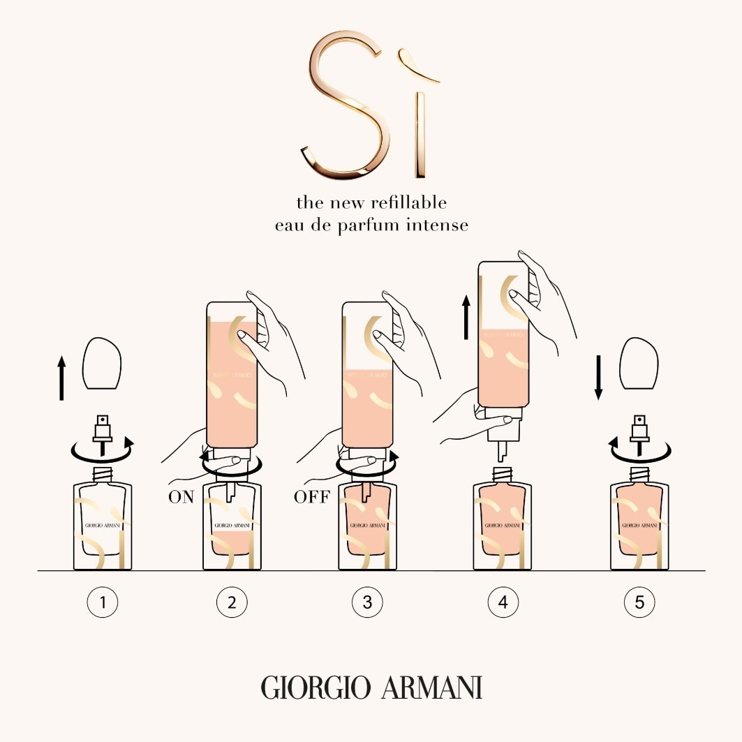 Pulverizar as zonas de maior pulsação, como o interior dos cotovelos e pescoço, de modo a aproveitar ao máximo a fragrância. Deixe que o aroma de Sì Eau de Parfum Intense, a envolva e acompanhe ao longo do dia.