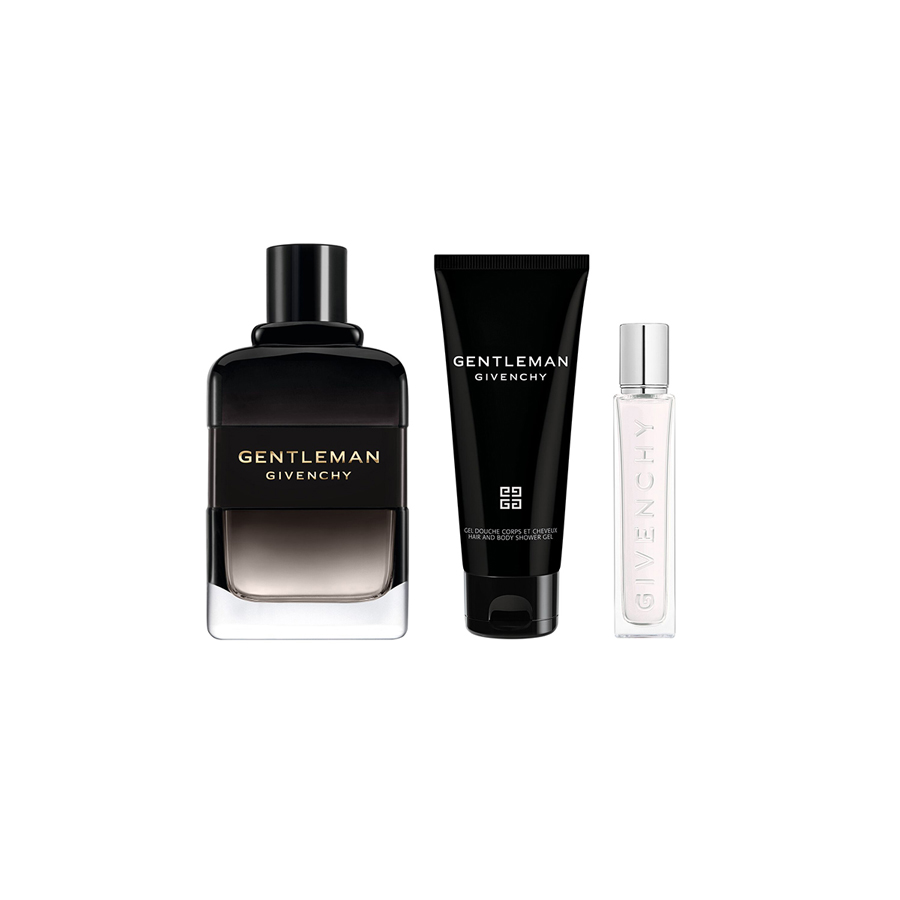 GENTLEMAN EAU DE PARFUM BOISÉE: ALCOHOL, PARFUM (FRAGRANCE), AQUA (WATER), ETHYLHEXYL METHOXYCINNAMATE, LIMONENE, LINALOOL, COUMARIN, BUTYL METHOXYDIBENZOYLMETHANE, BUTYLENE GLYCOL DICAPRYLATE/DICAPRATE, ALPHA-ISOMETHYL IONONE, CITRONELLOL, CITRAL, FARNESOL, GERANIOL, CINNAMAL, BHT, CI 60730 (EXT. VIOLET 2)GENTLEMAN HAIR AND BODY SHOWER GEL: AQUA (WATER), SODIUM LAURETH SULFATE, PEG-40 HYDROGENATED CASTOR OIL, COCAMIDOPROPYL BETAINE, CETEARETH-60 MYRISTYL GLYCOL, PARFUM (FRAGRANCE), GLYCERIN, POLYSORBATE 20, ALCOHOL, PHENOXYETHANOL, SODIUM CHLORIDE, CAPRYLYL GLYCOL, GLYCERYL LAURATE, LIMONENE, MENTHOXYPROPANEDIOL, TOCOPHERYL ACETATE, SODIUM CITRATE, LINALOOL, PANTHENOL, ALPHA-ISOMETHYL IONONE, CITRIC ACID, POLYQUATERNIUM-10, COUMARIN, CITRONELLOL, BHT, TOCOPHEROL, CI 14700 (RED 4), CI 19140 (YELLOW 5), CI 42090 (BLUE 1), CI 60730 (EXT. VIOLET 2)