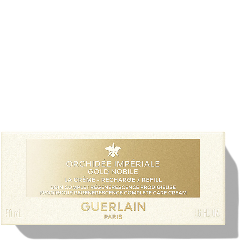 ¹Teste in vitro no ingrediente. ²A recarga é compatível com a tampa dos cremes Orchidée Impériale ou Orchidée Impériale Gold Nobile. ³Testes instrumentais e avaliações clínicas, 2 meses, China. ?Cálculo com base na norma internacional ISO 16128, incluindo água.