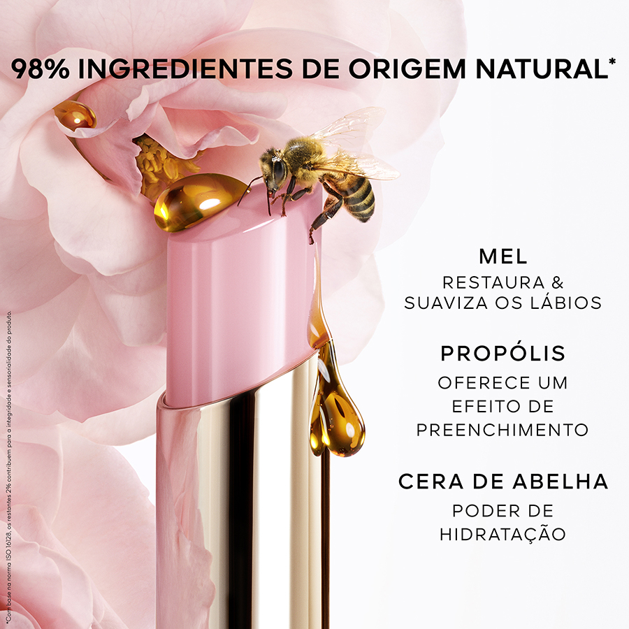 Guerlain apresenta KissKiss Bee Glow, um bálsamo de lábios com cor infundido com mel e composto por 98% de ingredientes de origem natural¹. Realça a cor natural dos lábios com um toque de brilho luminoso, proporcionando um cuidado regenerante e hidratante durante 24 horas². Cremosa e viciante, a sua textura incrivelmente fundente desliza nos lábios para um conforto prolongado. A fórmula combina o mel e ingredientes ativos fundentes para uns lábios macios, suaves, nutridos e preenchidos, mais bonitos a cada dia que passa. KissKiss Bee Glow está disponível em seis tons inspirados em flores com um acabamento natural, brilhante e guloso... para um sorriso radiante, irresistível e vibrante, que celebra a natureza, pronto para o beijo! ¹De acordo com a norma ISO 16128, os restantes 2% contribuem para a integridade e textura sensorial da fórmula. ²Testes instrumentais realizados em 21 voluntárias.