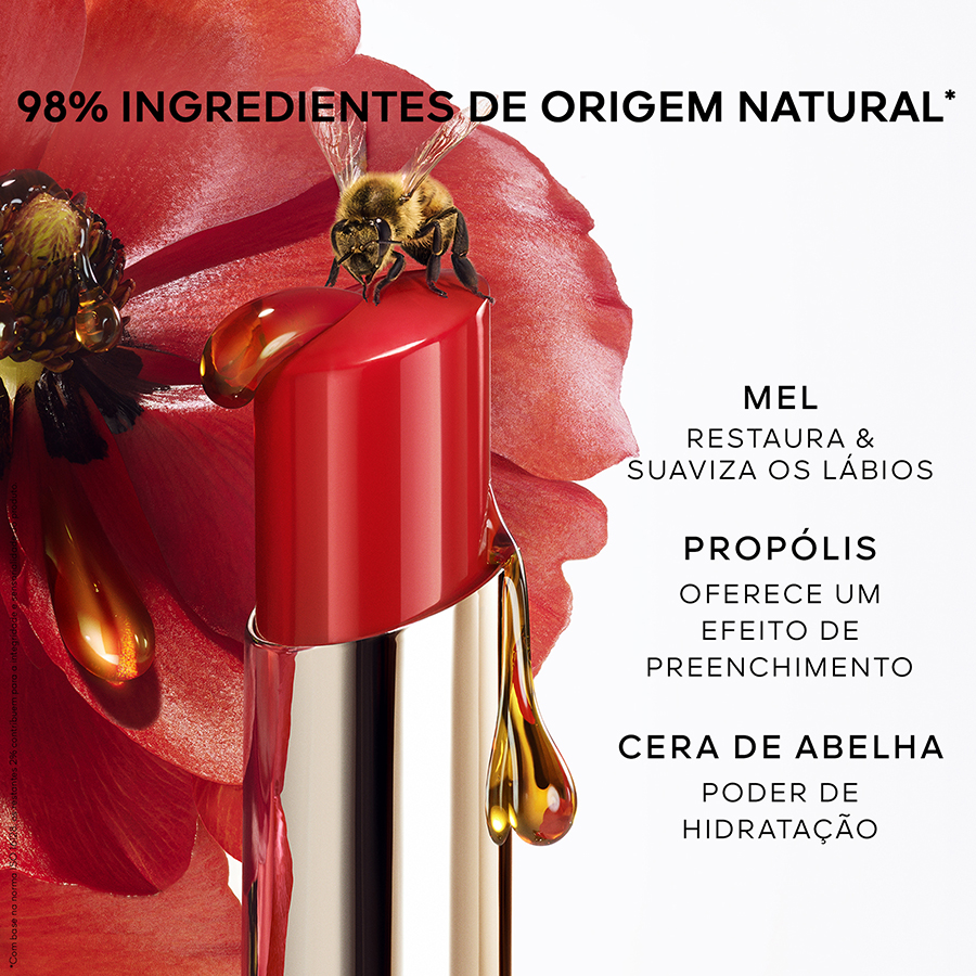 Guerlain apresenta KissKiss Bee Glow, um bálsamo de lábios com cor infundido com mel e composto por 98% de ingredientes de origem natural¹. Realça a cor natural dos lábios com um toque de brilho luminoso, proporcionando um cuidado regenerante e hidratante durante 24 horas². Cremosa e viciante, a sua textura incrivelmente fundente desliza nos lábios para um conforto prolongado. A fórmula combina o mel e ingredientes ativos fundentes para uns lábios macios, suaves, nutridos e preenchidos, mais bonitos a cada dia que passa. KissKiss Bee Glow está disponível em seis tons inspirados em flores com um acabamento natural, brilhante e guloso... para um sorriso radiante, irresistível e vibrante, que celebra a natureza, pronto para o beijo! ¹De acordo com a norma ISO 16128, os restantes 2% contribuem para a integridade e textura sensorial da fórmula. ²Testes instrumentais realizados em 21 voluntárias.
