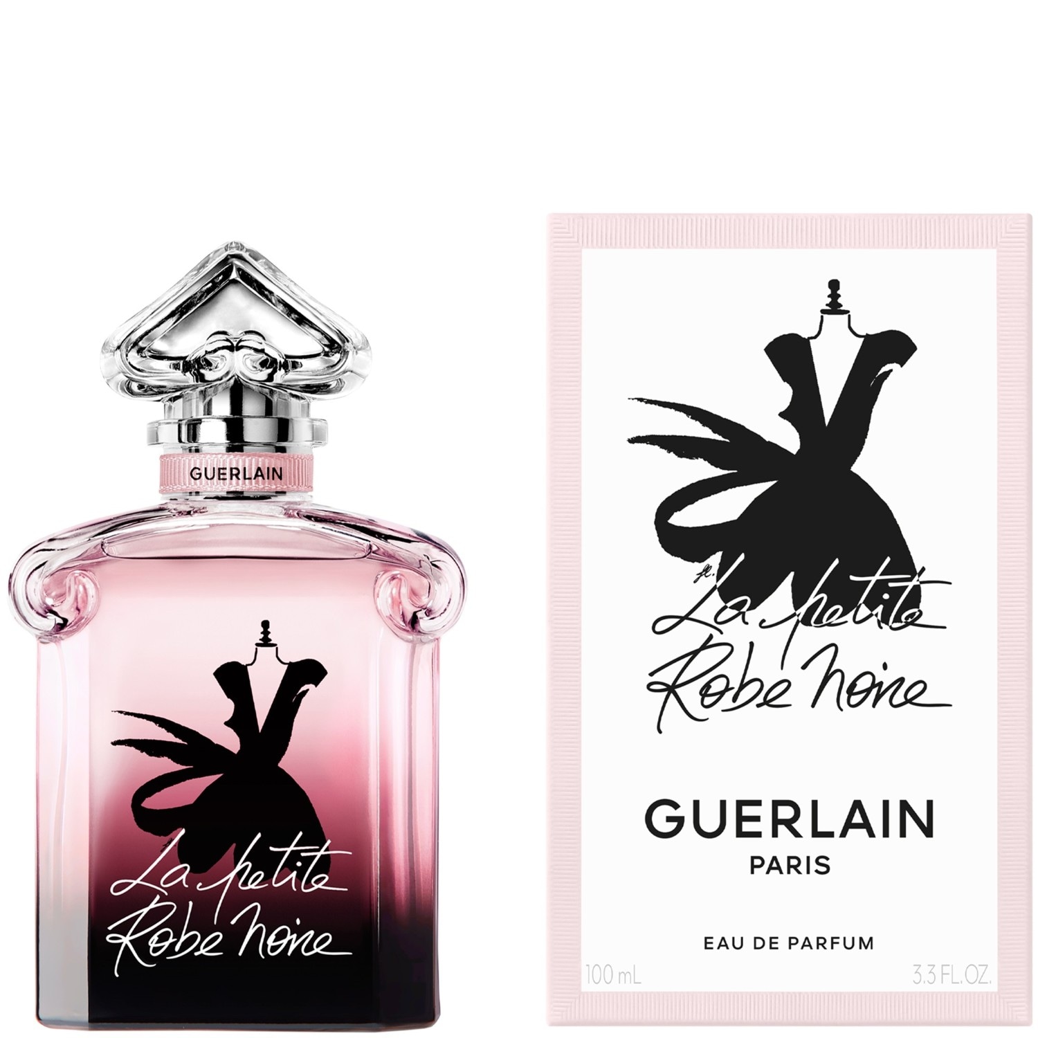 No guarda-roupa perfumado de La Petite Robe Noire, eu sou o Primeiro Vestido. Uma criação perfumada assinada Guerlain : uma eau de parfum bordada com as mais belas notas "pretas" da perfumaria: cereja preta, Rosa preta, Patchouli, Chá preto. O frasco mítico "coração invertido" revesitado com audácia e modernidade. Na sua transparência cristalina, degradée do preto ao rosa empoado, desvenda-se um vestidinho preto icónico.Sou absolutamente indispensável e totalmente irresistível. Sou a criação perfumada Guerlain chique e terrivelmente glamorosa. Sou La Petite Robe Noire.