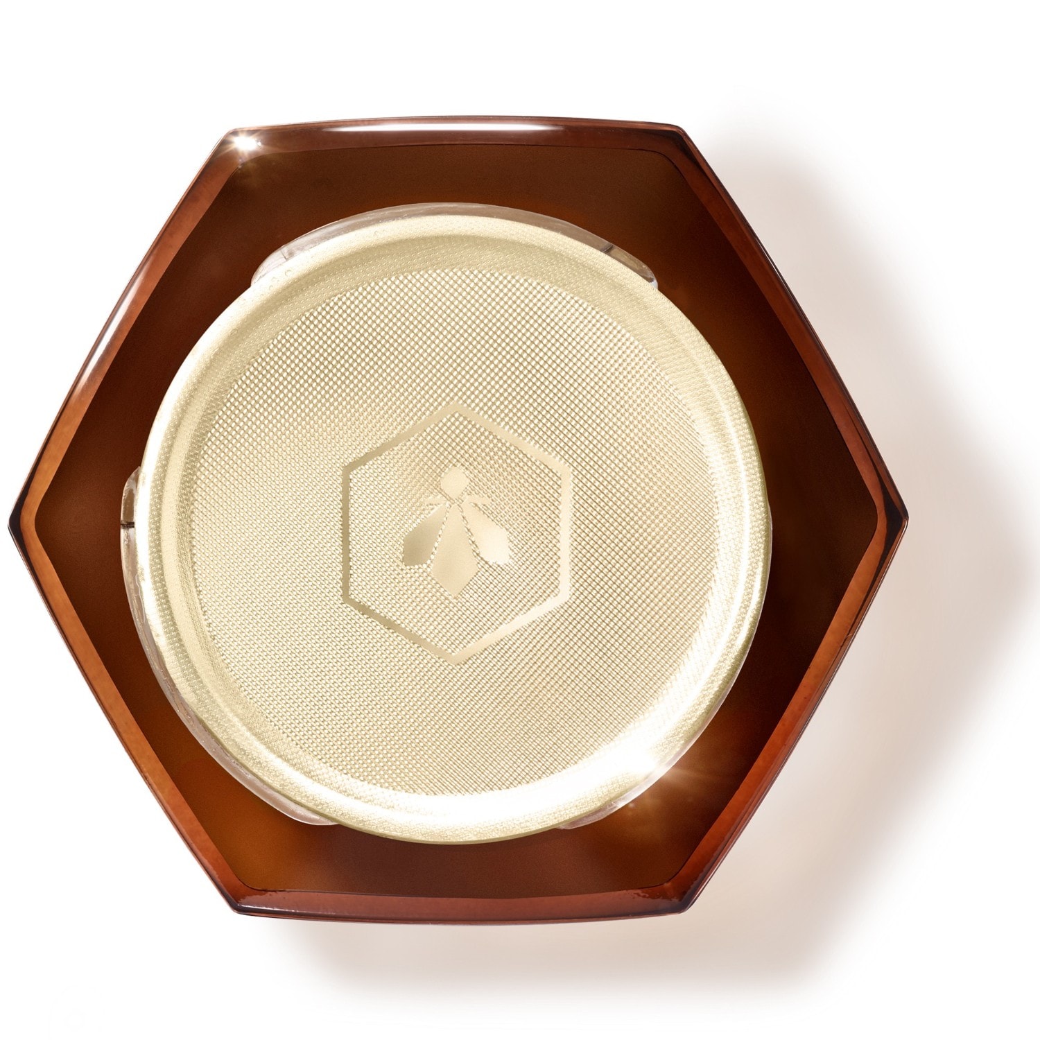 Inspirado nas compressas curativas com mel, o Creme de Dia Honey Treatment concentra os produtos mais poderosos das abelhas selecionados pela Pesquisa Guerlain para corrigir 4 marcas visíveis da perda de colagénio associadas ao envelhecimento. Dia após dia, as rugas são reduzidas e a firmeza, o aspeto suave e a luminosidade da pele são recuperados. A pele é reparada e parece visivelmente mais jovem. Fabricado utilizando um protocolo de formulação¹ que cria uma textura modeladora com efeito faixa. Funde-se perfeitamente com a pele, impregnando todas as camadas da epiderme com ingredientes ativos reparadores. O Creme de Dia Honey Treatment é recarregável. Formulado com 94% de ingredientes de origem natural², o Creme de Dia Honey Treatment integra a tecnologia avançada Dynamic BlackBee Repair, uma combinação ímpar de 4 méis reparadores e uma geleia real exclusiva. Combinação notável com ácido hialurónico polifragmentado e extrato de peptídeo pro-elasticidade para proporcionar a mais elevada eficácia nas camadas profundas da epiderme. O EXCECIONAL PODER REPARADOR DAS COMPRESSAS CURATIVAS COM MEL Abeille Royale ganhou vida com base numa intuição: o paralelismo biológico entre os mecanismos de tratamento e de reparação dos sinais do envelhecimento. Há mais de dez anos que a Pesquisa Guerlain confia no poder do mel, usado há milénios em compressas curativas, para criar cuidados que promovem uma pele jovem em colaboração com especialistas científicos em reparação da pele com base no mel. A INSPIRAÇÃO DO PROTOCOLO MÉDICO T.I.M.E. As compressas de mel atuam nas 4 fases do processo de reparação clínica T.I.M.E: T: Tissular Polishing (polimento tecidular); I: Inflammation Soothing (redução de inflamação); M: Moisture Lock-In (retenção de humidade); E: Elasticity Renewal (renovação de elasticidade). Inspirado neste protocolo, o Creme de Dia Honey Treatment atua na autorreparação de rejuvenescimento: a pele é suavizada e preenchida, e a sua luminosidade é amplificada. ¹De Guerlain. ²Com base na norma internacional ISO 16128.