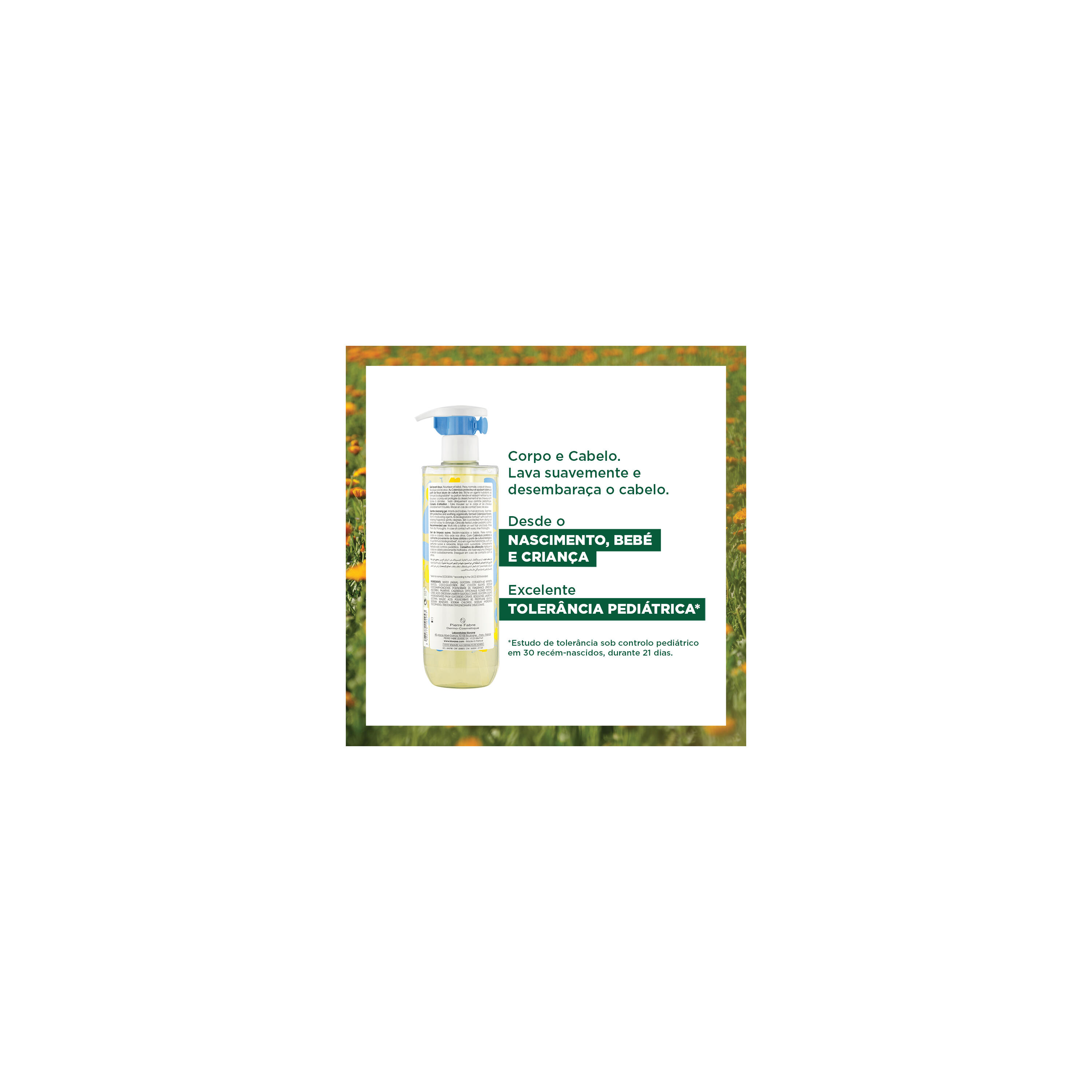 O Gel de Limpeza Suave para Bebé da Klorane limpa, apazigua e protege a pele e o cabelo delicado dos bebés sem irritar os olhos. A fórmula biodegradável* com flores de Calêndula calmantes e protetoras provenientes de agricultura BIOLÓGICA é enriquecida com agentes hidratantes naturais e foi testada sob supervisão pediátrica**. A pele do bebé fica hidratada e protegida. A mousse leve e perfumada transforma os banhos diários num suave momento de relaxamento e partilha.