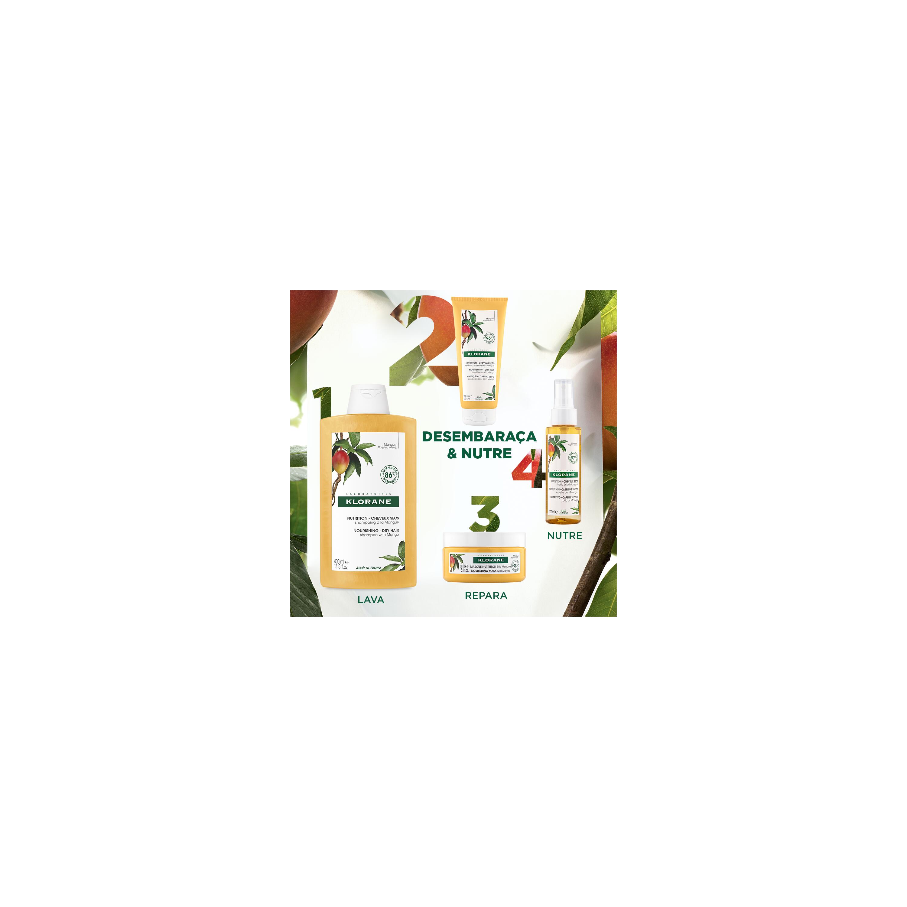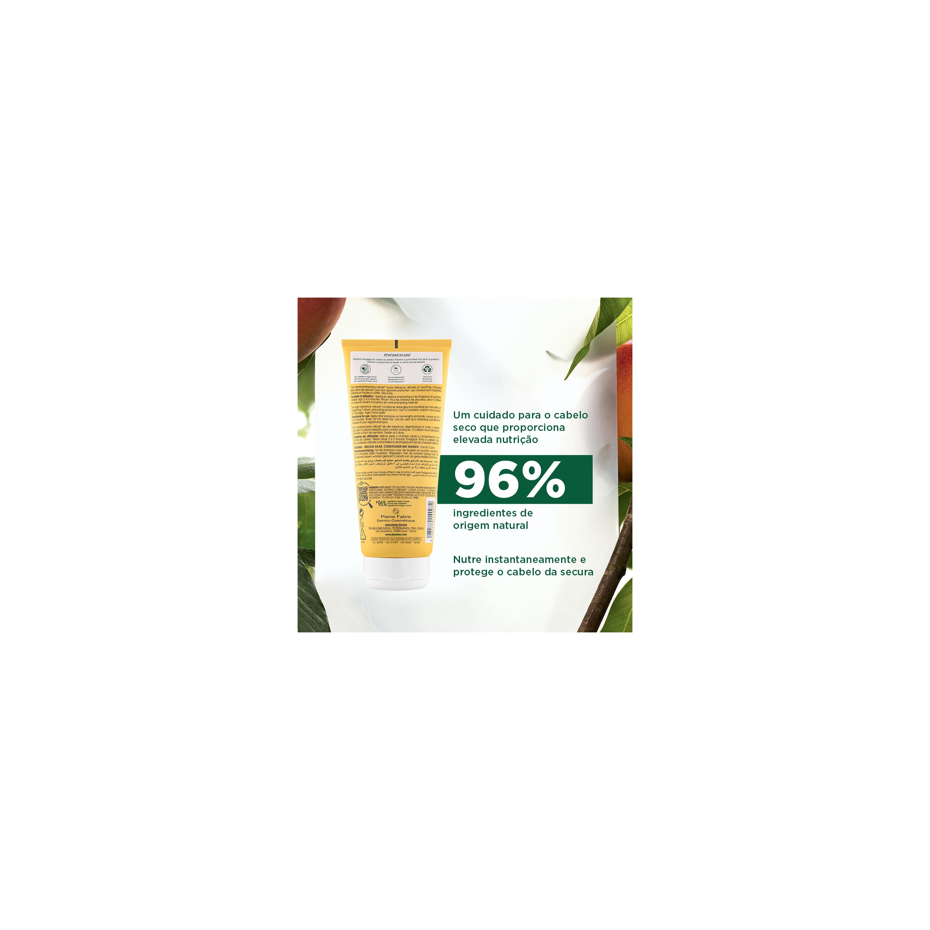 https://www.douglas.pt/p/klorane-condicionador-com-manga-1060369?c=8645&number=10603691060369Condicionador Com Mangahttps://media.douglas.pt/media/image/15/16/fd/3282770140965.jpg4.494.49EURInStockCabelo/Cuidados com o Cabelo/CondicionadorUm produto essencial para o cabelo seco, o Condicionador com Manga é o preferido do cabelo que necessita de nutrição. Sem pesar no cabelo, hidrata o comprimento do cabelo e fortalece as pontas. A sua fórmula rica em manteiga de manga nutre profundamente a fibra capilar para proteger o cabelo contra a secura. Com a sua textura sedosa e delicadamente perfumada, este condicionador é o complemento perfeito para recuperar um cabelo nutrido, flexível e perfeitamente desembaraçado.Klorane00https://media.douglas.pt/media/image/d4/a9/33/3282770140965_1.jpghttps://media.douglas.pt/media/image/2d/d7/58/3282770140965_2.jpghttps://media.douglas.pt/media/image/52/ca/d3/3282770140965_3.jpghttps://media.douglas.pt/media/image/f7/45/d1/3282770140965_4.jpghttps://media.douglas.pt/media/image/a3/f1/c1/3282770140965_5.jpg89.80 EUR * /1 l50,ml50ml000CondicionadorMango BIO