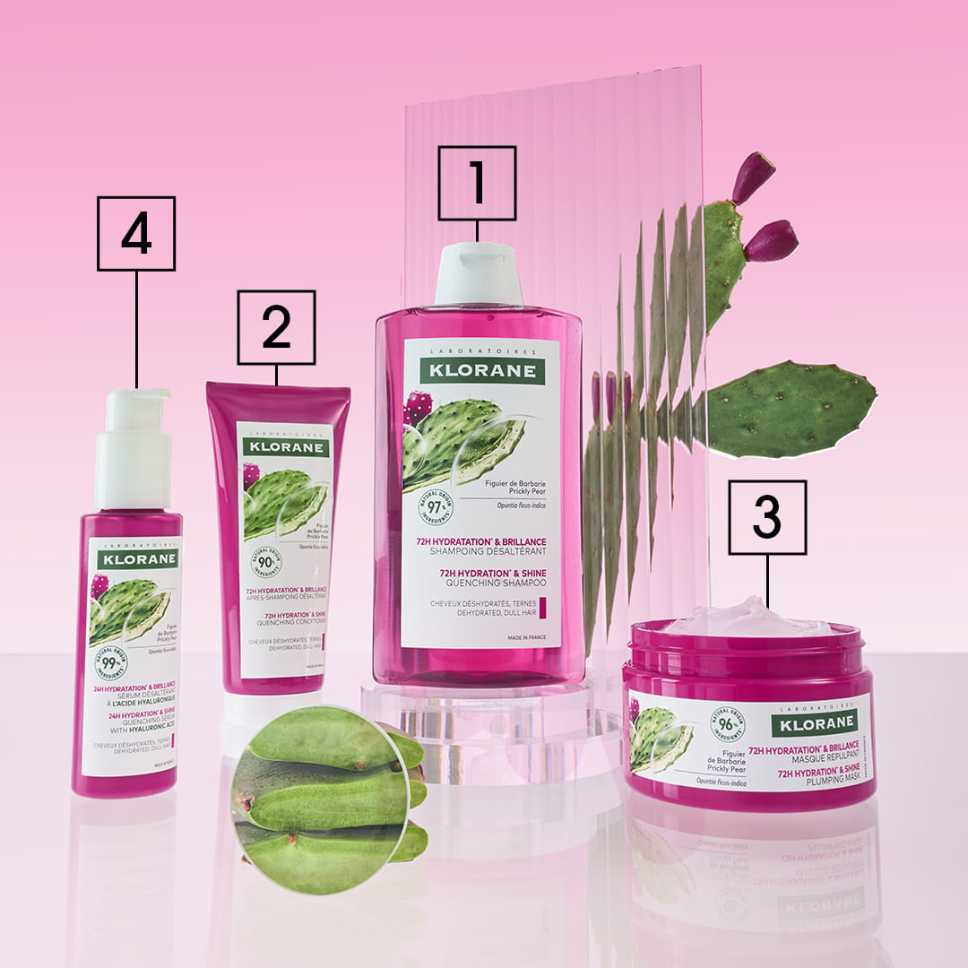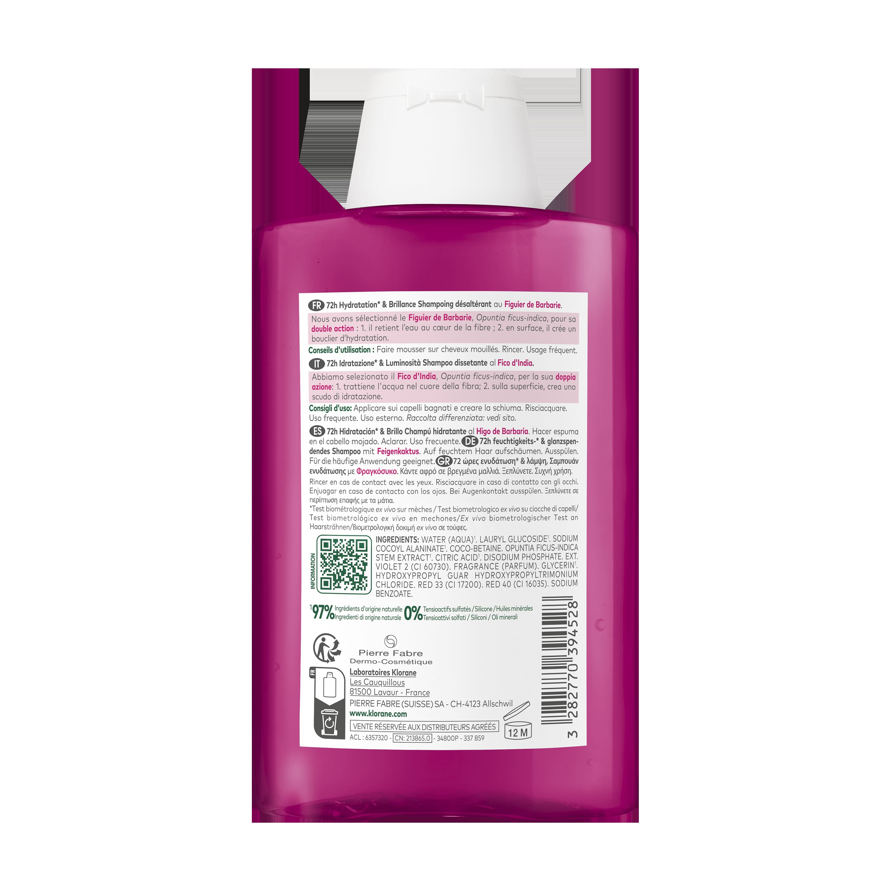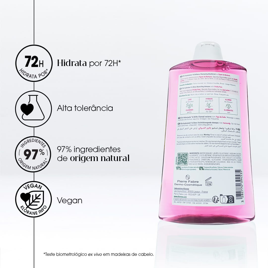 Este champô com Figo da Índia hidrata durante 72 horas* e devolve o brilho ao cabelo desidratado e baço. Este champô hidratante de longa duração cria uma espuma delicada e altamente sensorial. Formulado com 97% de ingredientes de origem natural, este champô com Figo da Índia, que possui propriedades hidratantes superiores às da glicerina** devido às suas moléculas hidro fixadoras, hidrata eficazmente e devolve o brilho ao cabelo sem pesar. Uso frequente.
