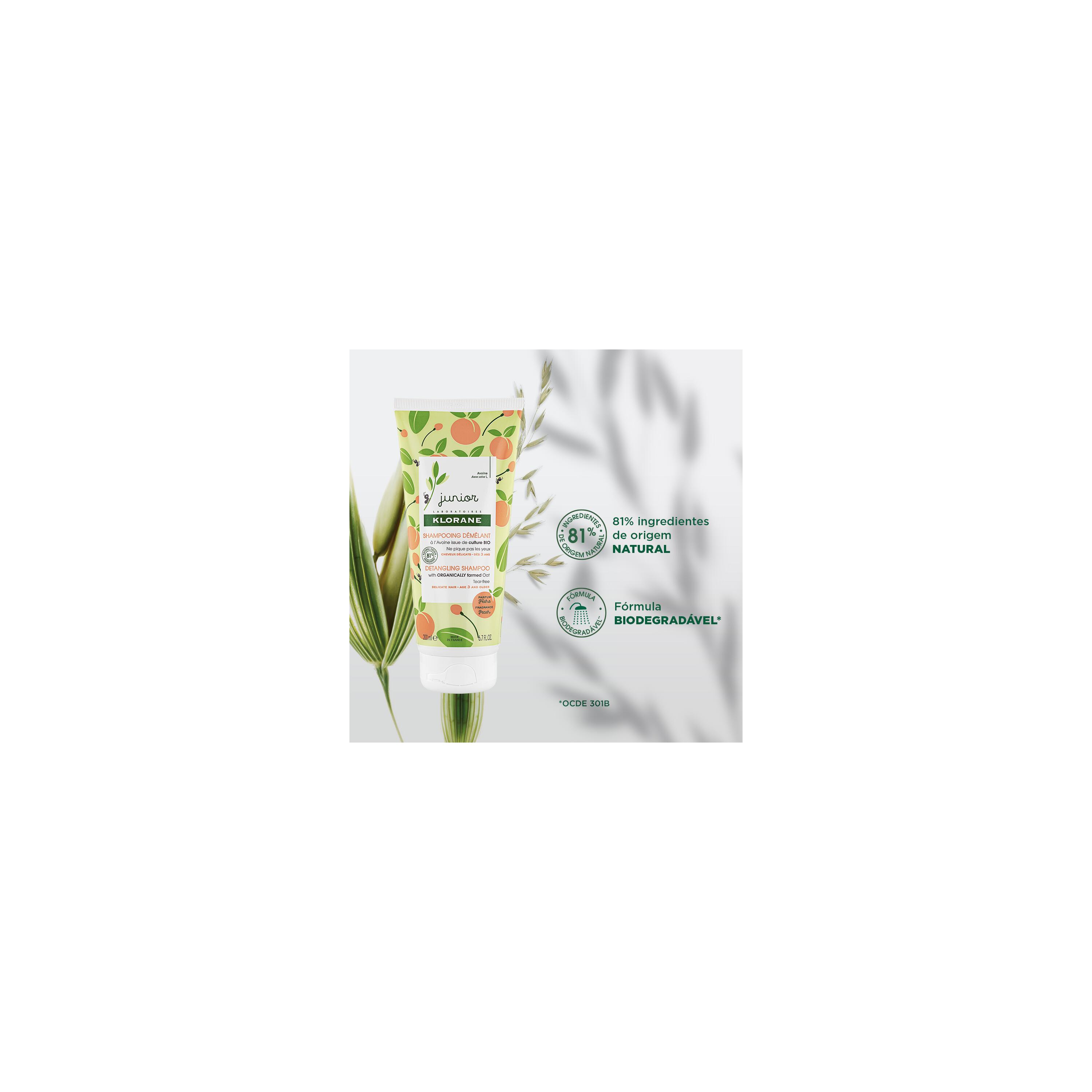 Subtilmente perfumado com pêssego, o Champô Desembaraçador suave formulado pelos Laboratórios Klorane limpa suavemente o couro cabeludo e o cabelo das crianças a partir dos 3 anos. Com uma fórmula biodegradável* que contém 81% de ingredientes de origem natural, é ideal para uma utilização regular. A espuma leve com um delicioso perfume a pêssego limpa e é enxaguada suavemente para dar ao cabelo a suavidade e hidratação de que necessita, sem arder nos olhos. Rico em aveia cultivada de acordo com a agricultura biológica, este champô para crianças também facilita o desembaraçar. O cabelo fica hidratado, macio** ao toque e recupera a sua suavidade e brilho. A embalagem divertida e colorida faz da lavagem do cabelo um momento de prazer, brincadeira e aprendizagem.
