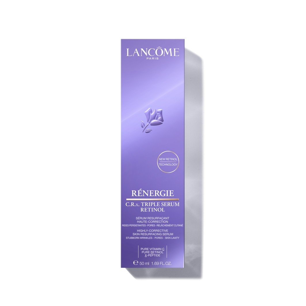 Rénergie C.R.x. Triple Serum Retinol, de Lancôme: o poder do retinol, numa combinação revolucionária. Pela primeira vez, 3 poderosos ativos são combinados em câmaras separadas, garantindo a máxima eficácia: o poder de correção do retinol puro, o poder iluminador da vitamina C pura e a ação apaziguante do péptido-x.