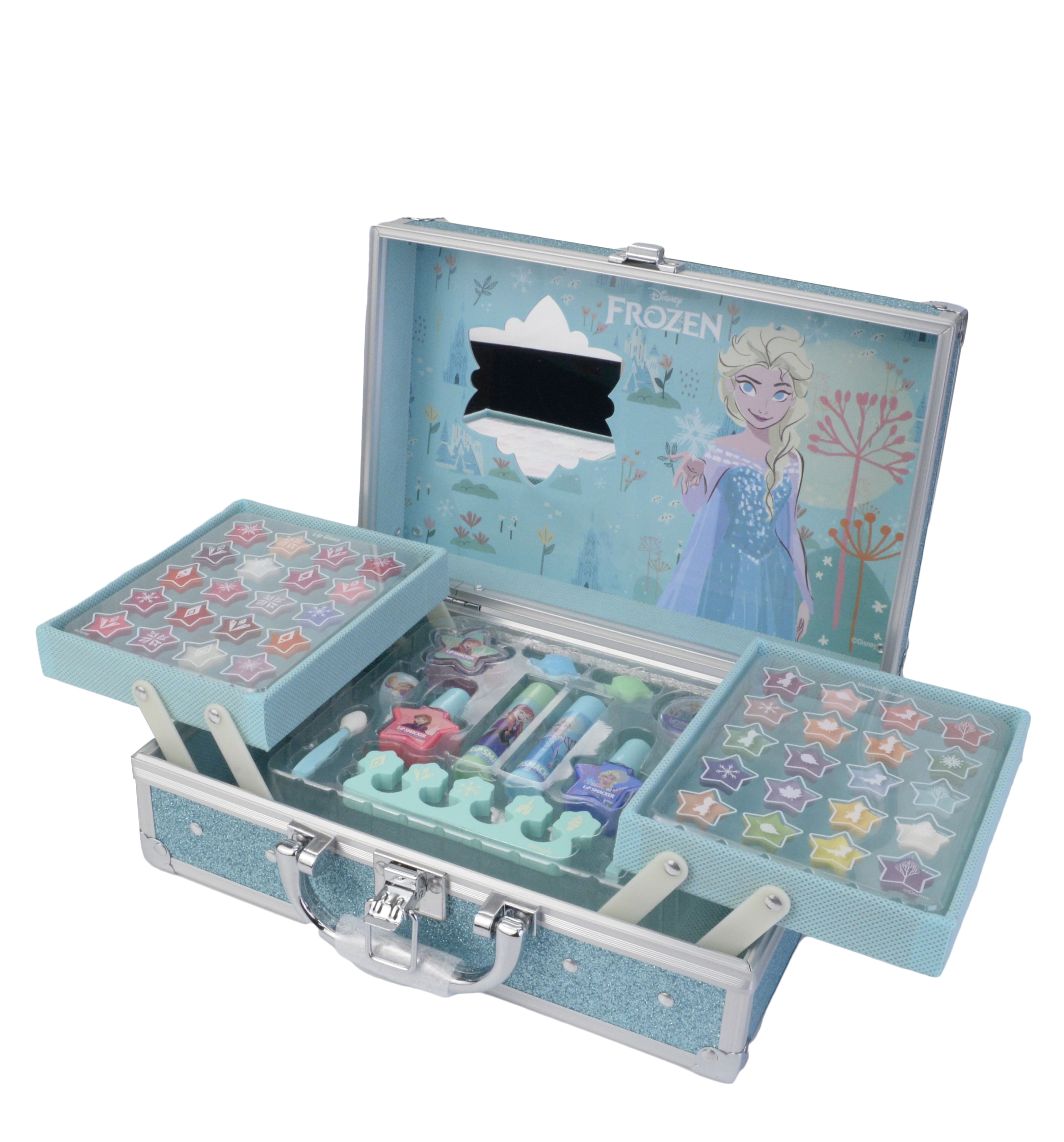 O luxo de Frozen está aqui Sabes qual é a mala mais desejada de Frozen? Tesouro é o que as amigas da Elsa e da Anna lhe chamam. Abra-o e encontre as suas loucuras de maquilhagem. São tantas as tonalidades que vai ser difícil decidir qual delas usar. Deixe-se levar e inove os seus looks sem parar.