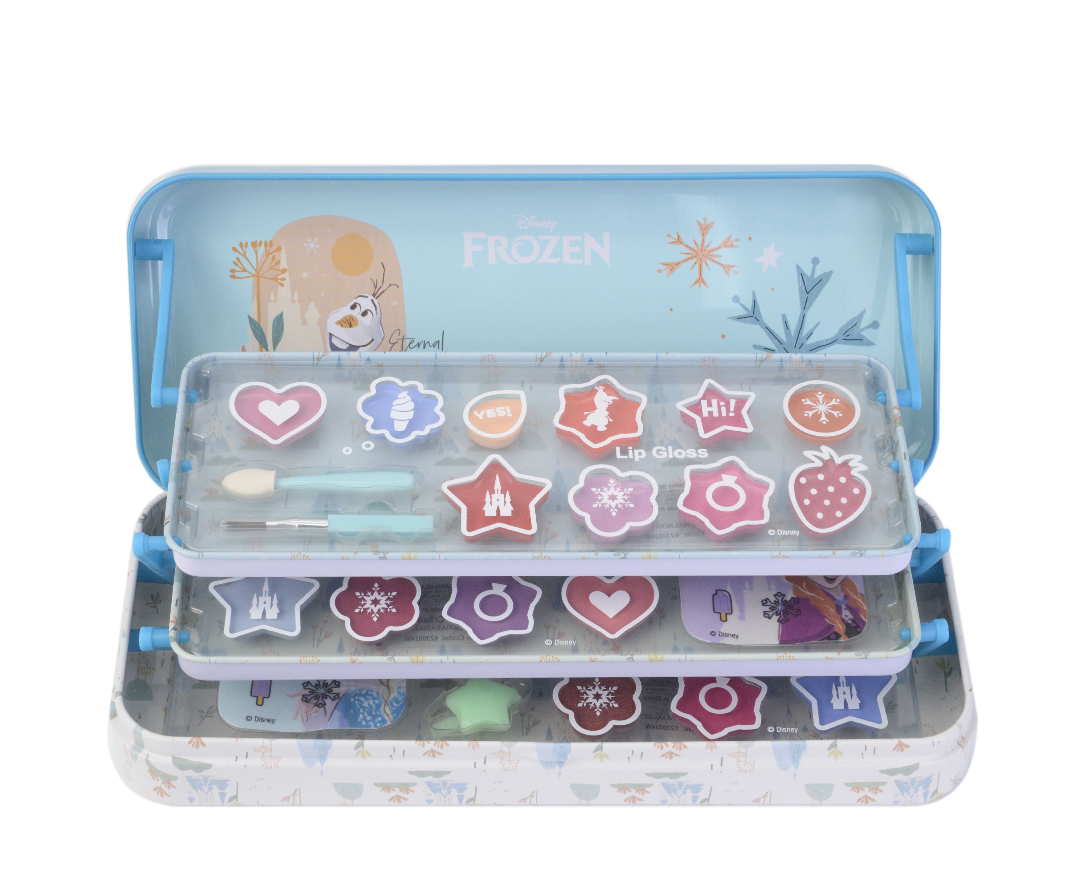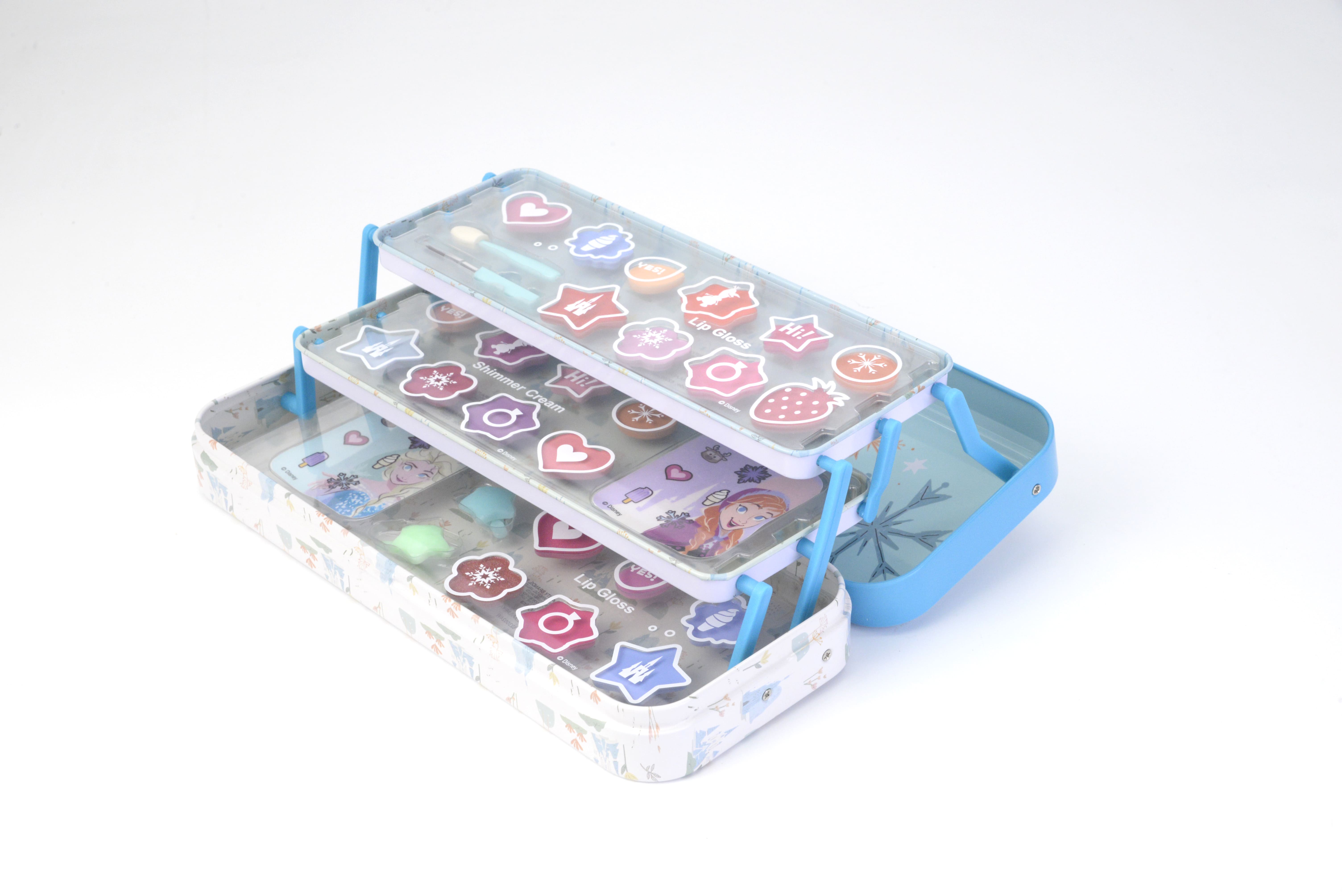 Uma das pequenas jóias da Elsa e da Anna. Divirta-se uma, duas e três vezes com esta coleção colorida numa lata de 3 andares Frozen. Imbatível e perfeita para uma maquilhagem mágica, tal como no filme.
