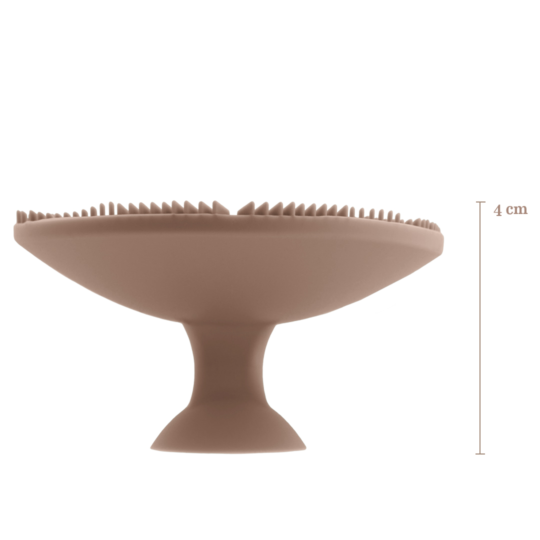 A sua textura de limpeza única remove de forma fiável resíduos de maquilhagem, sebo e sujidade das cerdas dos pincéis. A forma curva encaixa perfeitamente na palma da sua mão e assegura que é necessária menos água.