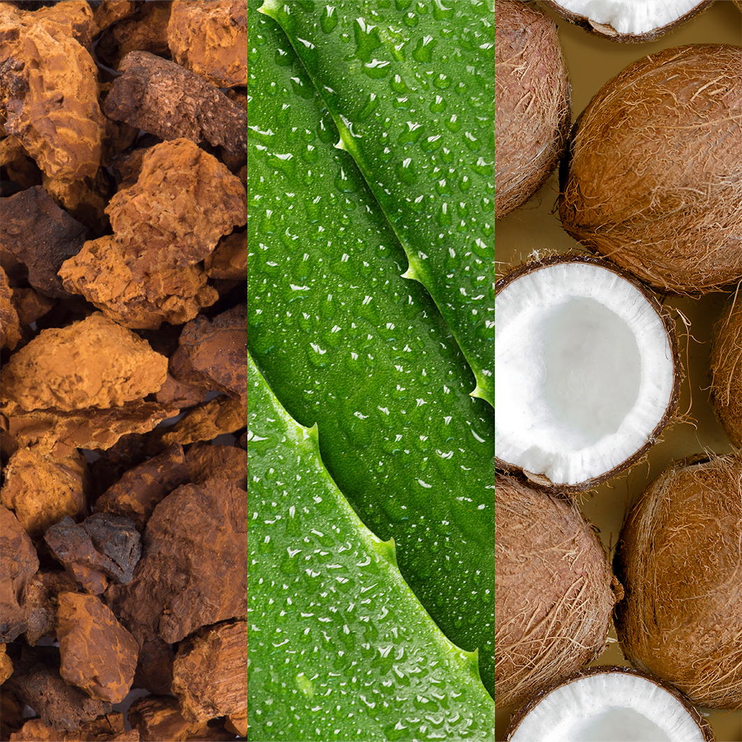 Aqua (Water, Eau), Aloe Barbadensis Leaf Juice, Niacinamide, Sodium Hyaluronate, Cocos Nucifera (Coconut) Water, Acanthopanax Senticosus (Eleuthero) Root Extract, Inonothus Obliquus (Mushroom) Extraxt, Rhaponticum Carthamoides Root Extract, Rhodiola Rosea Extract, Selaginella Lepidophylla Extract, Sodium Benzoate, Sodium Sulfite, Trehalose, Potassium Sorbate, PPG-5-Ceteth-20, 1, 2-Hexanediol, Maltodextrin, Caprylyl Glycol, Phenoxyethanol, Citric Acid