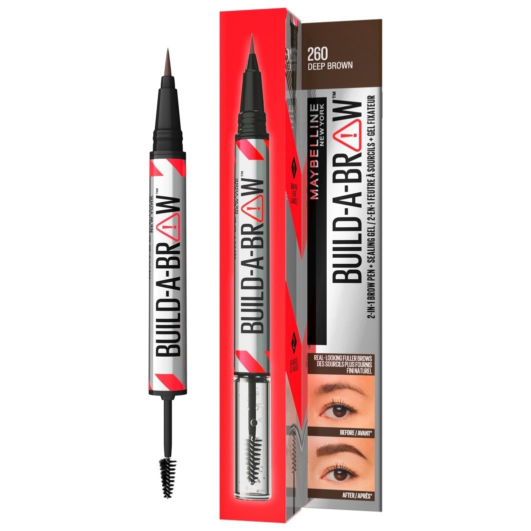 Descobre Build-A-Brow, de Maybelline New York e consegue umas sobrancelhas reais e preenchidas em apenas 2 passos: 1º Passo: Preenche as sobrancelhas com a caneta de precisão que imita o pelo da sobrancelha. 2º Passo: Esculpe com o gel fixador e transparente, para uma duração até 24 horas. Consegue um look mais preenchido e natural e escolhe o teu tom ideal, entre os 6 diferentes tons de Build-A-Brow 2-em-1, de Maybelline New York.