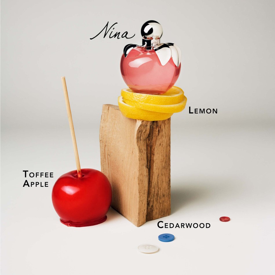 O mestre perfumista Olivier Cresp criou para Nina Ricci uma Eau de Toilette brilhante e sensual - Nina. O desejo guloso das mulheres: uma maçã de caramelo ousada.