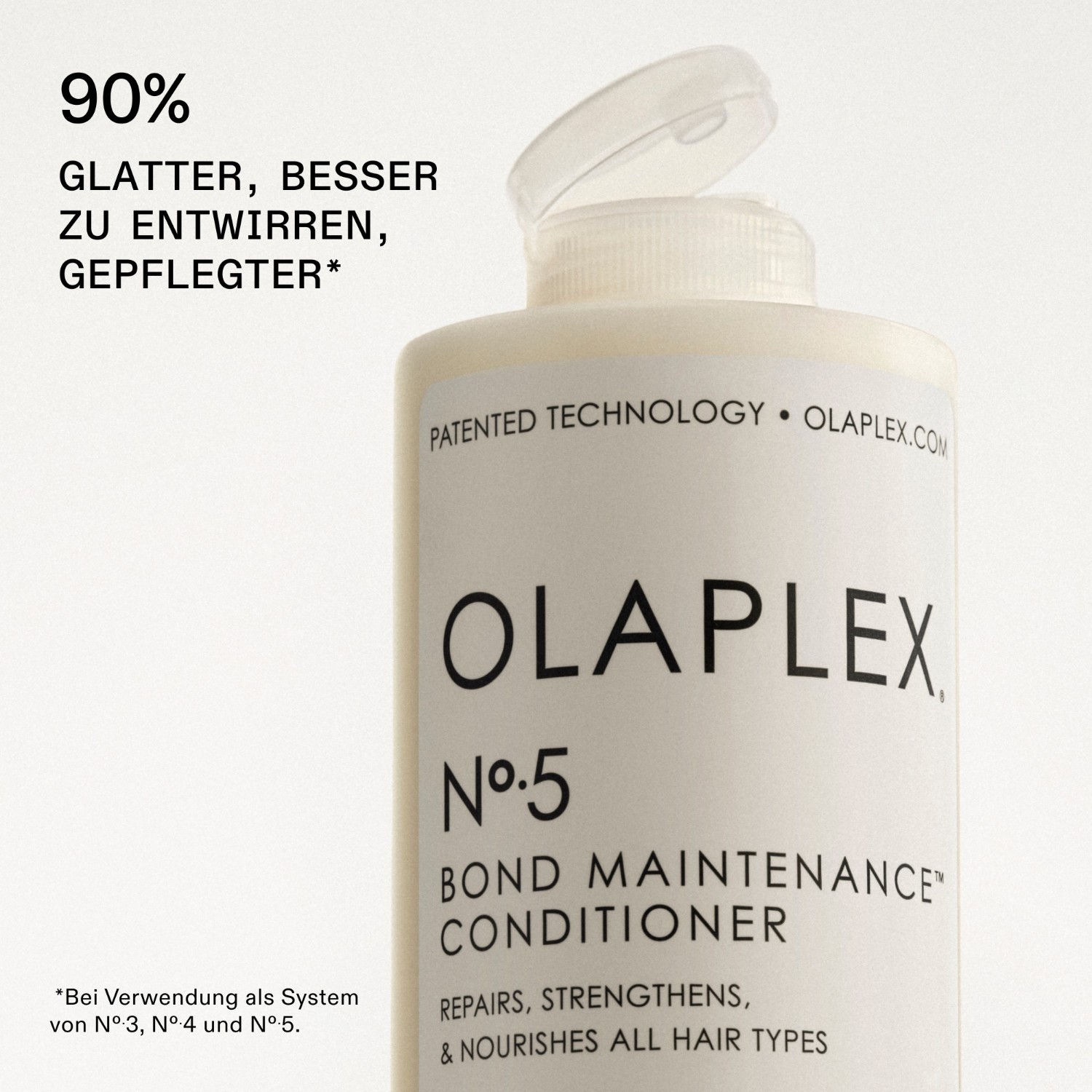 Olaplex - Condicionador de Manutenção de Ligações Nº 5. Você notou que seu cabelo ficou seco, quebradiço e com frizz desde que começou a descolorir ou usar ferramentas de calor? Apresentamos o OLAPLEX. Com um ingrediente ativo patenteado que age em nível molecular, as fórmulas do OLAPLEX buscam as ligações quebradas no cabelo (causadas por danos químicos, térmicos e mecânicos) e as reparam, restaurando os fios. Antes disponível apenas em salões de beleza, o Condicionador de Manutenção de Ligações Nº 5 OLAPLEX repara as ligações capilares e restaura suavemente os níveis de hidratação sem pesar; é perfeito para eliminar o frizz e os danos, promovendo cabelos fortes, saudáveis ??e brilhantes.