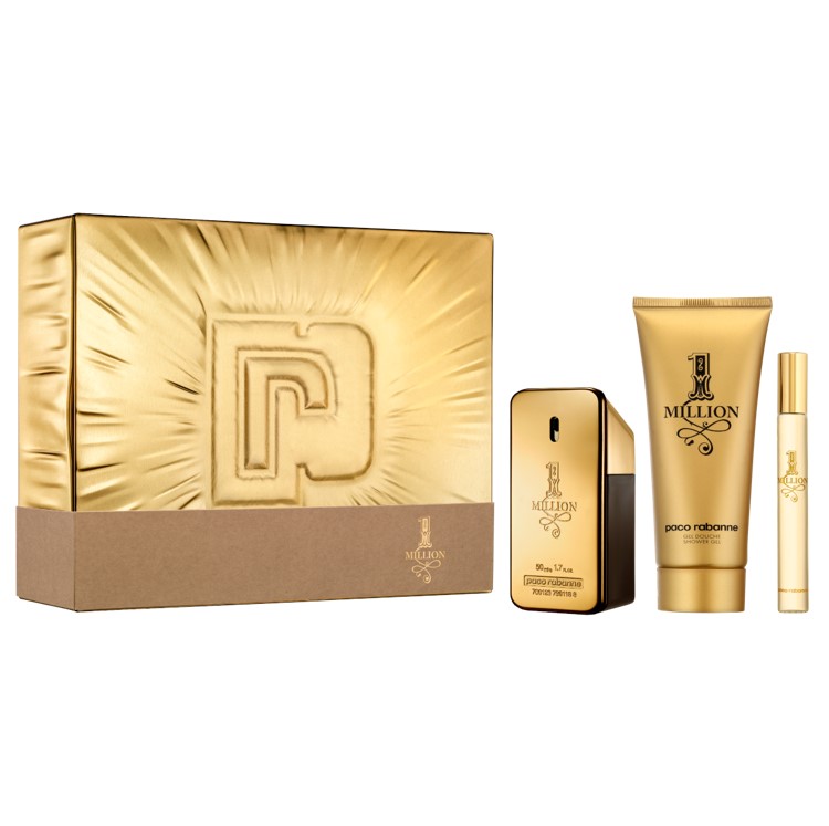 https://www.douglas.pt/p/paco-rabanne-1-million-men-eau-de-toilette-50ml-set-713776?__shop=17137761 Million Men Eau de Toilette 50Ml Sethttps://media.douglas.pt/media/image/ff/56/19/Picture53BMffYFcoN4cGZ.jpg69.5069.50EUROutOfStockPerfumesPerfumes/HomemPerfumes/Homem/Perfumes MasculinosPerfumes/Homem/CoffretsMarcas/Paco RabanneMarcas/Paco Rabanne/Perfumes MasculinosMarcas/Paco Rabanne/Perfumes Masculinos/1 MillionPerfumes/CoffretsNatal/Presentes para Homem/Coffrets de Natal<p>Uma fragrância para um homem extravagante e ousado que vai sempre além com os seus sonhos e fantasias, uma arma de sedução para um homem sofisticado. O aroma de sucesso, elegante e impertinente, uma mistura intoxicante e poderosa. Começa fresca e move-se num acorde de couro picante, tão puro como a barra de ouro. Uma fragrância de couro especiada e fresca.</p>Paco Rabannehttps://media.douglas.pt/media/image/c4/24/94/Picture52ayc3rJCJTGAxP.jpghttps://media.douglas.pt/media/image/56/bc/e5/Picture54hzkebKQd2jhRa.jpgadd-to-cart€ 69,50 * / 1 und.1,und.0000Eau de Toilette - Set1 Million Men