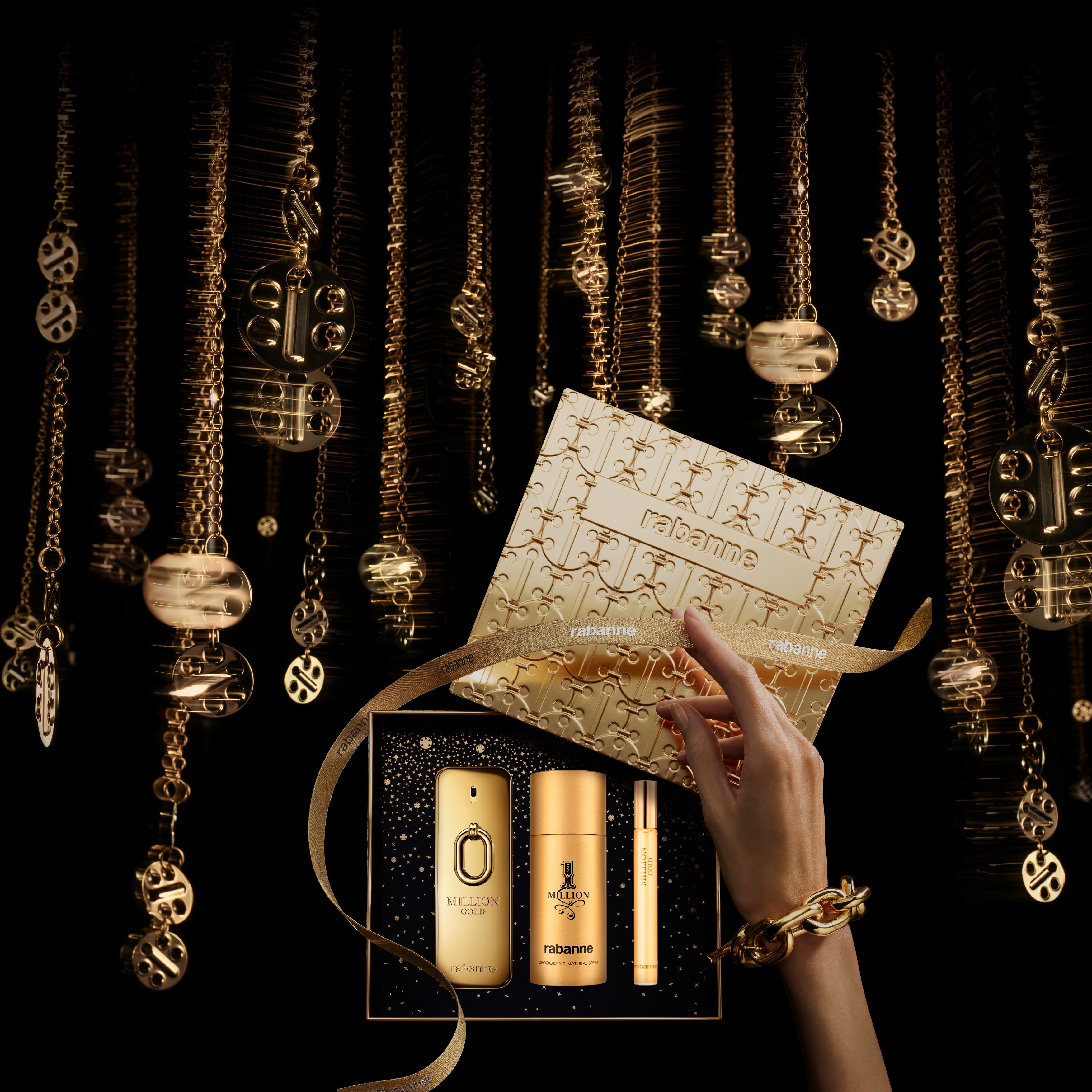 https://www.douglas.pt/p/rabanne-million-gold-for-him-intense-eau-de-parfum-spray-100-ml-set-1202823?c=1151202823Million Gold For Him Intense Eau de Parfum Spray 100 Ml Sethttps://media.douglas.pt/media/image/ab/32/fa/1202823.jpg88.2088.20EURInStockPerfumes/Perfumes Homem/Coffrets para HomemMillion Gold Eau de Parfum Intense exprime a emoção do sucesso dourado. Galvanizado num instante, uma nova interpretação do homem Million que celebra a irreverência extravagante do sucesso. Mergulhe num mundo de entusiasmo que irradia a energia viciante que o deixa extasiado com o ouro. Uma adição ultra-sensual e amadeirada, que combina tangerina fresca com madeira de cedro quente, sândalo vibrante e especiarias poderosas. Seja o dono do ouro. Million Gold, de Rabanne.Rabanne00https://media.douglas.pt/media/image/45/b6/78/1202823_1.jpghttps://media.douglas.pt/media/image/3f/e0/f4/1202823_2.jpghttps://media.douglas.pt/media/image/57/42/40/1202823_3.jpgadd-to-cart88.2 EUR * /1 und.1,und.1und.000Eau de Parfum - SetMillion Gold For Him