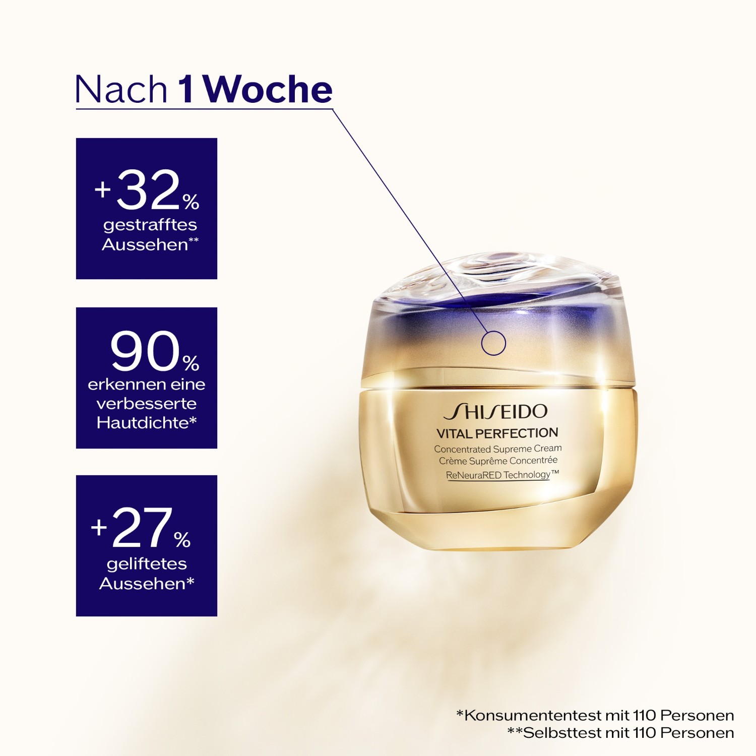 Após limpar a pele com a Clarifying Cleansing Foam & suavizar com a Treatment Softener, aplique Vital Perfection Concentrated Supreme Cream de manhã e à noite.