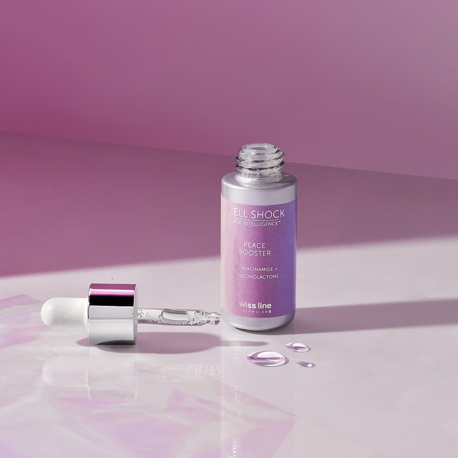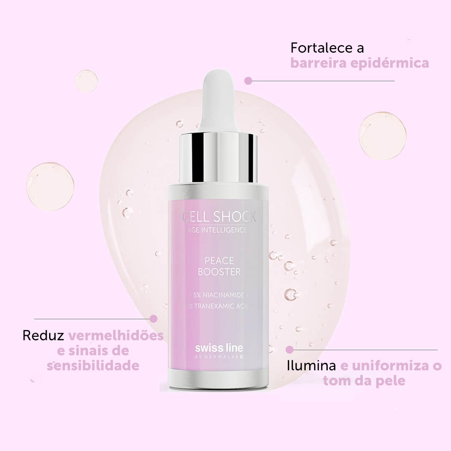 https://www.douglas.pt/p/swissline-cell-shock-ai-peace-booster-258889?c=13729258889Cell Shock AI Peace Boosterhttps://media.douglas.pt/media/image/1a/e0/49/7611892012076.jpg106.00106.00EURInStockMarcas/Swissline/Rosto/Cuidados de Rosto/BoosterPEACE BOOSTER visa os sinais visíveis de inflamação, incluindo os que estão associados à vermelhidão, bem como a rosácea, a pigmentação pós-procedimento com laser e os efeitos secundários decorrentes da medicação oral prescrita para tratar a acne. Reduz a vermelhidão, contribui para a reparação da pele, ilumina e uniformiza o tom da pele.