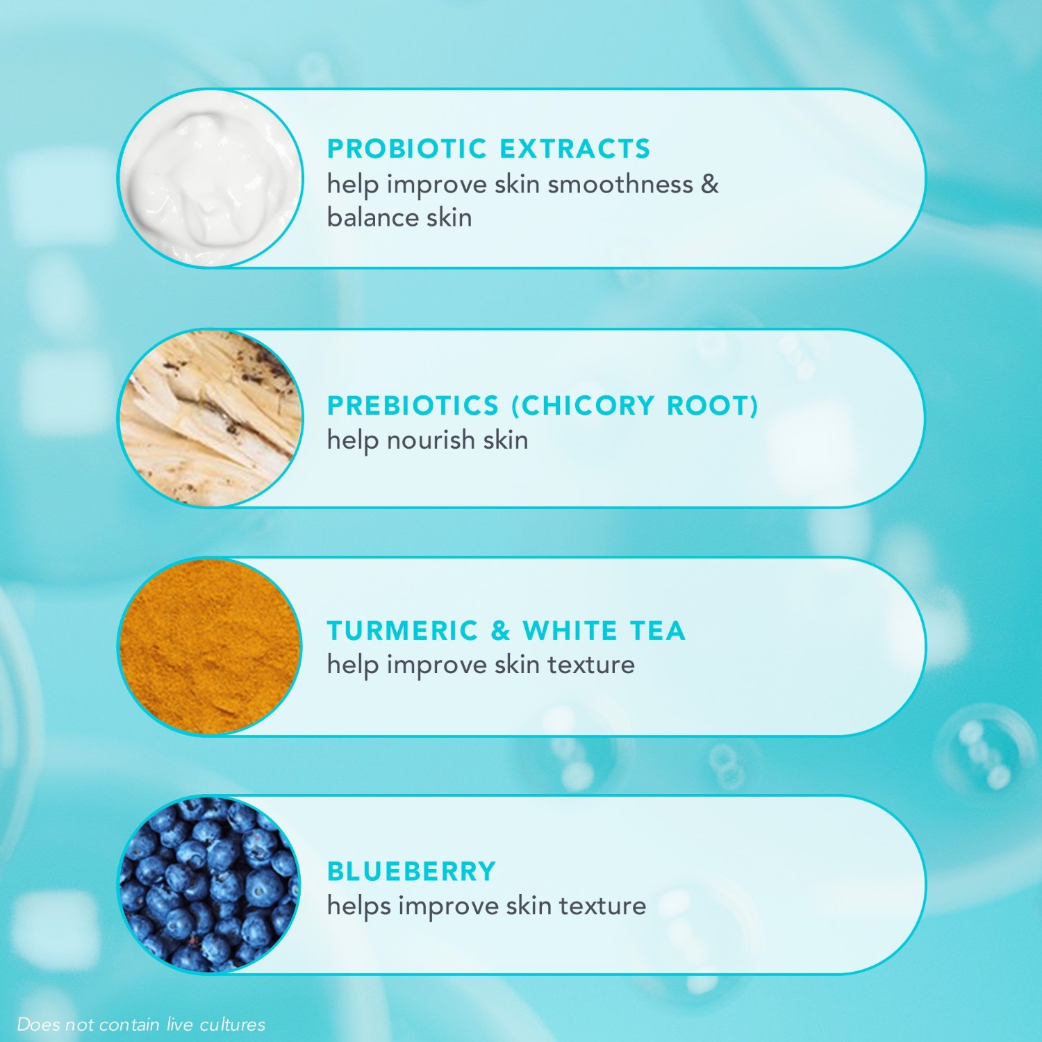 Este gel de limpeza refrescante da TULA ajuda a remover as impurezas e os resíduos sem desidratar ou secar demasiado. Formulado com prebióticos, extratos probióticos e curcuma que ajudam a deixar a pele purificada, clarificada e equilibrada, enquanto o ácido lático esfolia suavemente para revelar uma pele com um aspeto mais radiante. Sem culturas vivas.
